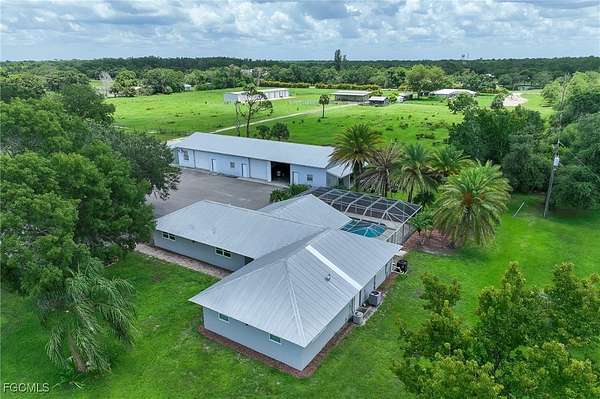 Discover the charm of rural living just minutes from I-75 in this lovely 4-bedroom plus den, ranch-style home nestled on an expansive 5-acre parcel situated on a private road. Built in 1983, this single-level residence spans approximately 2,344 sq ft and features a welcoming layout designed for comfort and casual elegance. The amazing chef's kitchen includes a large island and offers ample cabinetry and opens seamlessly to the dining and family areas-ideal for entertaining or relaxed family life. Step into a bright, airy interior with central heating and cooling, open floor plan, and a cozy fireplace perfect for gatherings. Each bedroom is thoughtfully appointed, complemented by two full baths. The spa-like master bathroom features a jacuzzi soaking tub for ultimate relaxation. The backyard oasis features a spacious pool for entertaining or unwinding. Outside, the property's metal roof and solid-surface construction mirror its sturdy design also updated with Hurricane Windows and Doors. The detached garage offers room for over 10 cars/boats including a lift for car enthusiasts to work on your cars, as well as an air contitioned work area. While the vast lot invites possibilities: imagine a barn, or stables-and yes, horses are welcome. The pastoral setting is enhanced by mature shade trees and the peace that only acreage affords. Water is supplied via a well, with septic service in place. Zoned AG-2 for agricultural use, this property offers the privacy and flexibility of country living without sacrificing proximity to city amenities, schools, and highways. This unique property is a must see!!!