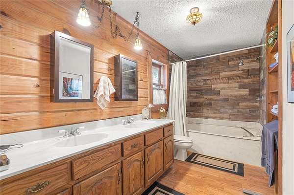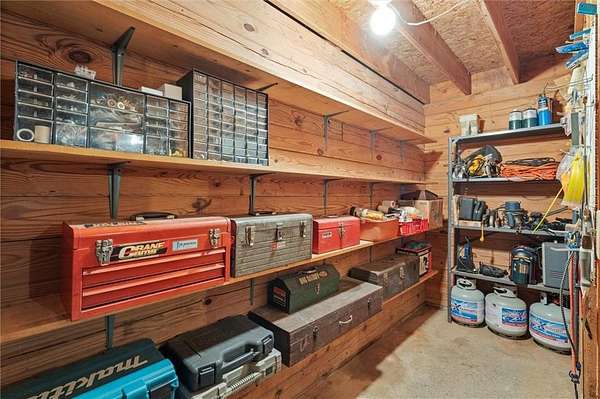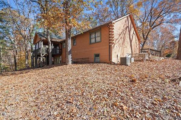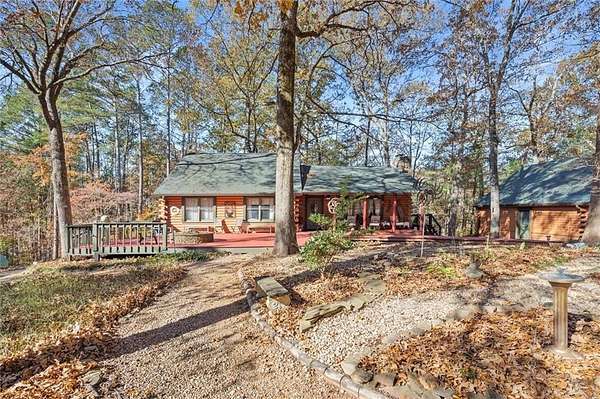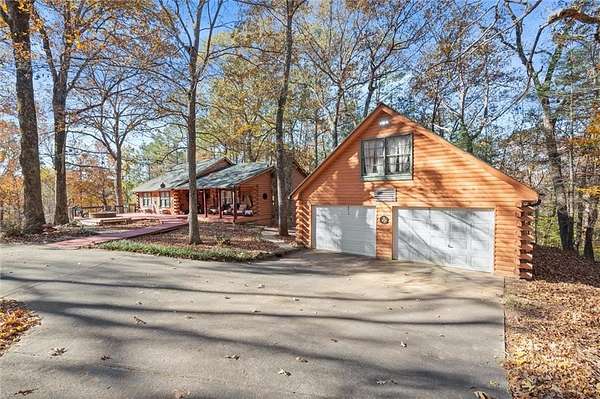 Charming Log Home on 10.8 Private Acres - Perfect for Homesteading & Country Living. Discover the beauty and serenity in this inviting log home surrounded by nature. This property offers the perfect setting for a peaceful retreat, self-sufficient lifestyle, or homesteading dream. You will immediately be greeted by a covered rocking chair front porch and a huge deck with a built in fire pit. Couldn't ask for a better spot for morning coffee or afternoon cocktails. Step inside to find a warm, rustic interior with wood finishes throughout, an open floor plan, and a beautiful stone, wood burning fireplace prefect for the upcoming cold nights. The home offers cozy living spaces and scenic views from every window, creating an atmosphere of comfort and tranquility. The kitchen features stainless steel appliances and is open to the breakfast room and large living room with vaulted ceilings. Main level has 3 bedrooms, 2 bathrooms. Full Basement has a huge open concept family room with a cozy woodburning stove. Convenient full bathroom in the basement with 2 extra rooms currently being used as a craft room and a canning/food storage room. Outside, the land is ideal for organic gardening, composting, and small-scale farming with chickens, raised beds and composting site already in place. A detached two-car garage provides ample parking and includes a full upper-level storage area, perfect for a studio or additional storage space. And you don't have to drive to the mountains to get this! While this peaceful log home feels worlds away, it's perfectly situated just minutes from modern conveniences and local attractions. Enjoy easy access to shops, restaurants, and even a local winery. Spend weekends exploring the nearby Lake Allatoona, where you can swim, boat, or fish, or head to the beach area of Sweetwater Creek Campgrounds for picnics, lakeside relaxation, and fun summertime activities. Enjoy the privacy and quiet of your own slice of paradise, with space to explore, grow, and relax. Whether you're seeking a sustainable lifestyle or a peaceful getaway, this property offers endless possibilities.