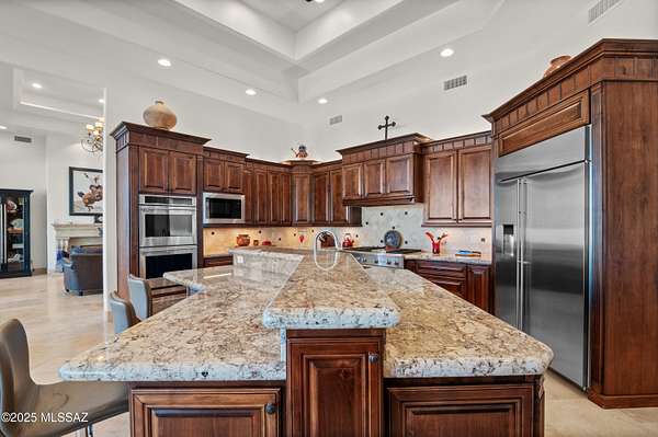 - Built-In Features, High Ceilings, Kitchen Island, Sound System, Walk-In Closet(s)