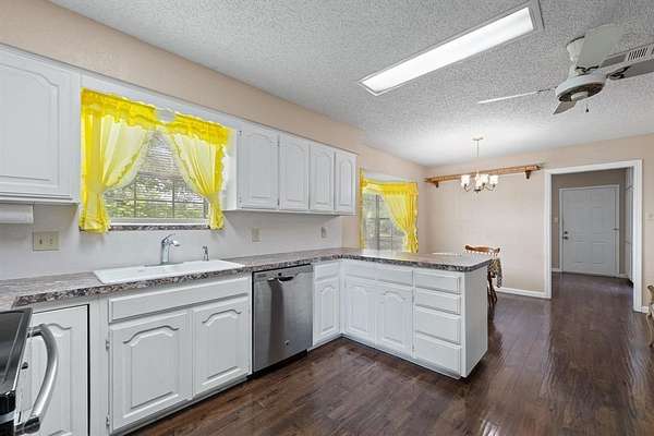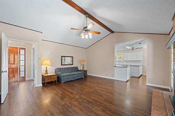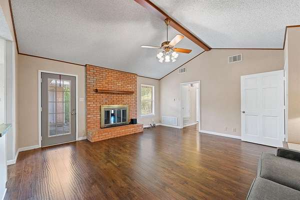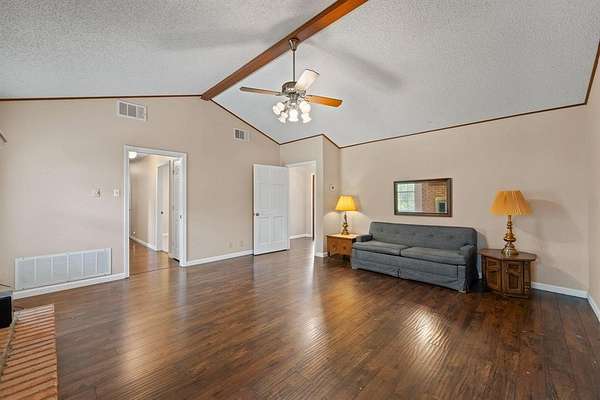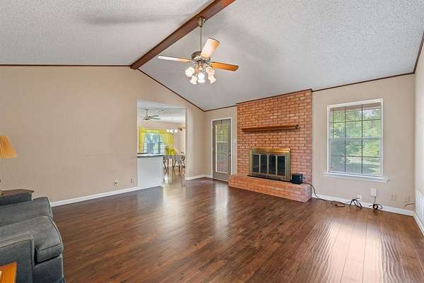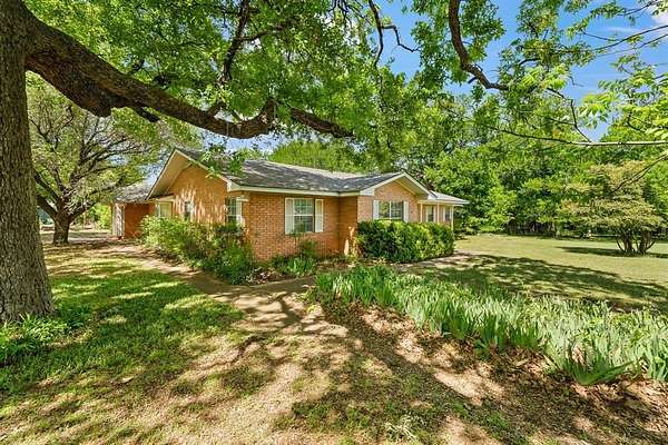 This exceptional property offers stunning acreage adorned with mature oak trees, creating a truly picturesque setting. Custom-built and lovingly maintained by its original owner, the home welcomes you with a spacious front porch perfect for a porch swing and your morning coffee. Inside, the inviting entryway provides a warm first impression and includes a convenient coat closet. Just off the entry are formal living and dining rooms, ideal for entertaining family and friends. The cozy family room features a charming brick fireplace, adding warmth and character to the space. The bright and sunny kitchen, along with the adjoining breakfast area, makes everyday living feel special. You'll find abundant cabinetry, generous countertop space, and a window above the sink that brings in natural light. The breakfast area is highlighted by a large bay window, perfect for enjoying peaceful views of the property. The spacious primary bedroom offers comfort and functionality with two closets, while both guest bedrooms are oversized and include walk-in closets. Storage is plentiful throughout the home, including a well-appointed laundry room. The land itself is a rare find featuring a beautiful mix of mature trees and open pasture, ideal for horses or grazing livestock. Additional amenities include a workshop, storage building, and even a charming windmill once used to water the garden. The yard is filled with a variety of flowers that will delight the new owner season after season. Recent updates include new flooring in much of the home and a brand-new roof installed in March 2026. Another bonus is this property is located in Grandview ISD.