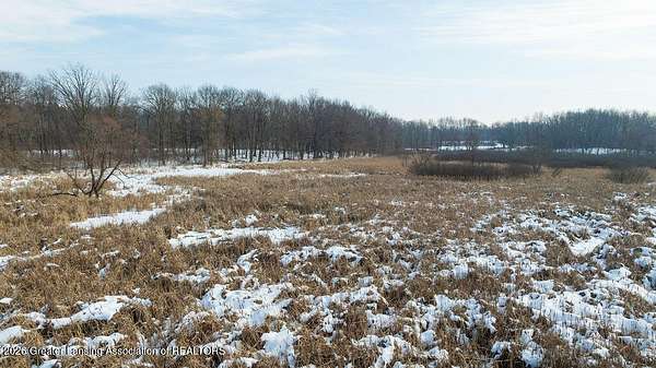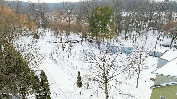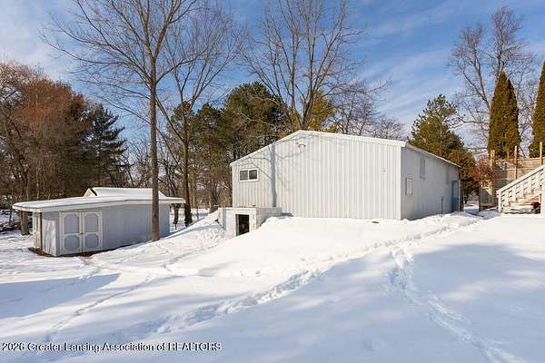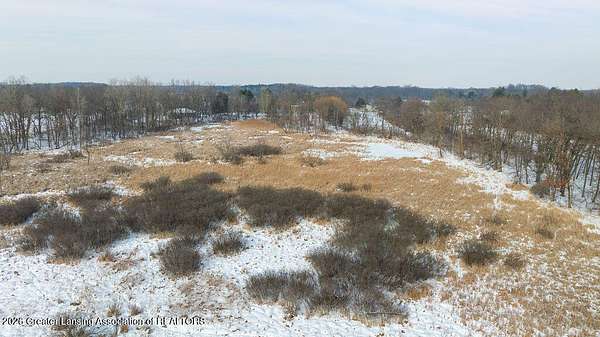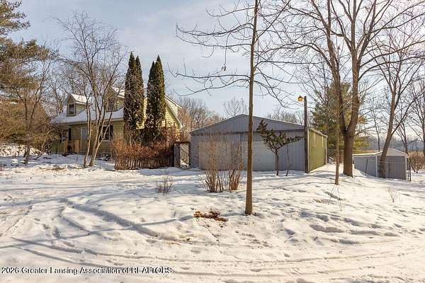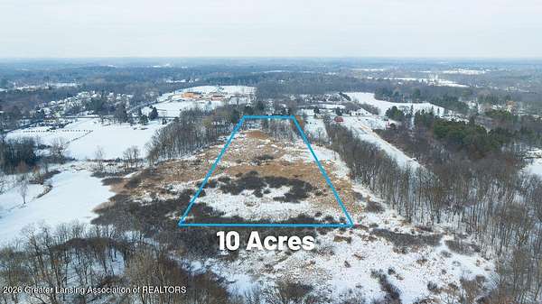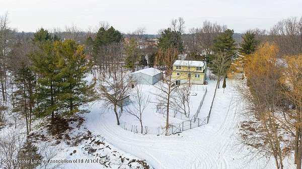 10 acres with aluminum siding 3-bedroom 2 bath Cape Cod. Approx. 95 mature trees with marsh area at the back. Convenient to I-96 and 127 with shopping approx. 4 & 7 miles away. 30 X 40 metal roofed & sided concrete floor pole barn with 2 garage bays and insulated, newly painted workshop with benches, overhead lighting, new electric panel, switches and outlets. The house features all new light fixtures, switches, outlets, plus new doorknobs and hinges on all interior doors and cabinets. Most of the interior is newly painted. The kitchen includes electric range, new range hood plus a new faucet. Open plan dining and living area has many windows. Computer compatible home office/hobby room features built in shelving. There is space for a future 1st floor laundry. The full bathroom has a new sink, stool, fixtures, shower head and a sweeper closet. The 2nd floor includes a full bath with new faucet, stool and shower head. The 3 bedrooms all offer their own closets. The lower level is newly painted and includes washer and electric dryer, gas water heater and new well pressure tank and switch. The walk-out sliding door leads to a large fenced-in backyard with 3 sheds and a secondary fenced-in area.