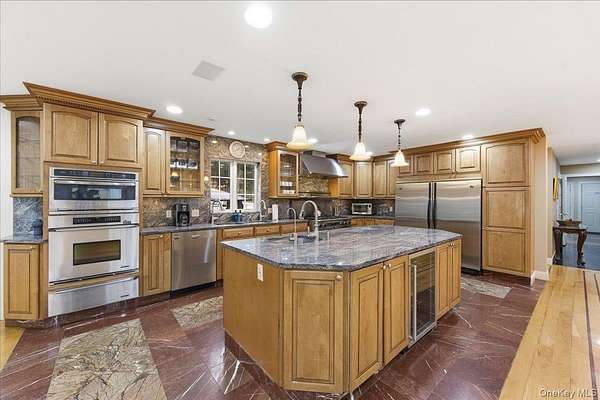Set on four acres overlooking Green Lake, this exceptional custom-built Catskill home offers sweeping lake and seasonal mountain views, refined craftsmanship, and a thoughtful balance of openness and privacy. The residence spans over 4,100 square feet and features 4 bedrooms and 4 baths, including first- and second-floor primary suites that support flexible, multi-level living. Large, open living spaces are enhanced by soaring cathedral ceilings and an airy floor plan. Italian tile welcomes you at the main entry, while wide oak floors accented with mahogany inlays run throughout. The living room is anchored by a dramatic, towering Jerusalem limestone fireplace, creating a striking focal point. Expansive windows on both the first and second floors capture views of the surrounding mature landscape, mountains, and Green Lake. All bedrooms feature cedar-lined closets. The home is equipped with an impressive range of amenities, including a gleaming gourmet kitchen with Italian granite countertops, built-in double ovens, a commercial-grade refrigerator and freezer, wine cooler, and generous space for everyday living and entertaining. Outdoor living is designed for relaxation, with a completely private backyard features a hot tub perfect for a day after skiing. Garage space is abundant, with an oversized three-car attached garage plus a two-car detached garage with loft, providing ample room for vehicles, storage, and recreational equipment. Many significant updates have been completed in recent years, including a geothermal heating and cooling system, a full security system with cameras, and EV chargers installed in the garage. Additional upgrades enhance comfort, efficiency, and convenience. Reach out for a complete list of improvements and features. Located minutes to Windham and Hunter Mountain, close to Hudson, and surrounded by the region's breweries, wineries, art galleries, farm-to-table restaurants, antiquing, golf courses, and hiking trails, this Green Lake retreat offers a true Catskills lifestyle approximately two hours from NYC.