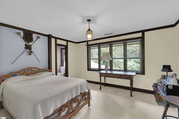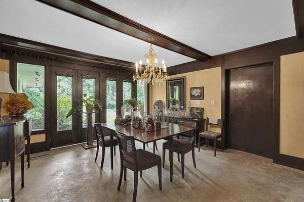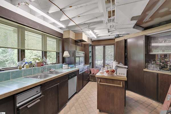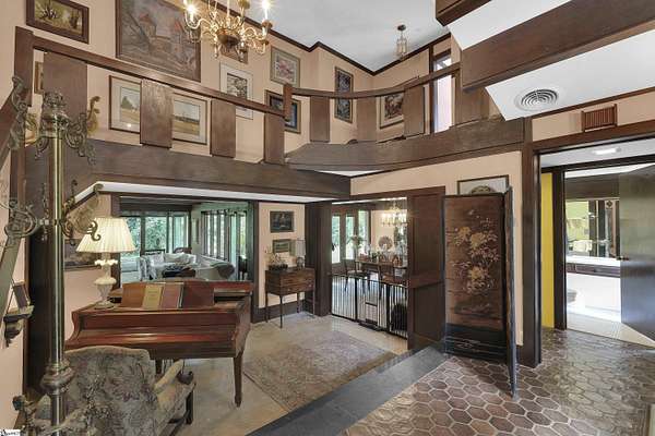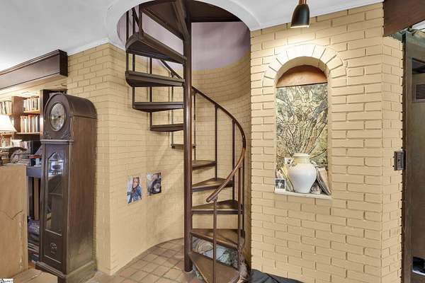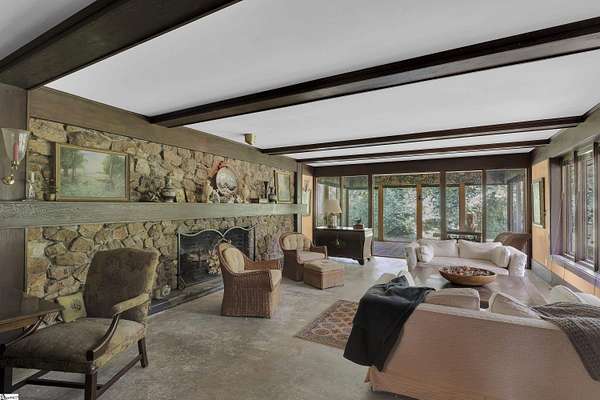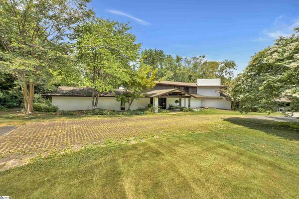 Listed by Kiersten Bell + Co | 864-567-1457 or 864-894-2144 for private tours | A Mid-Century Modern Masterpiece Waiting to Be Reimagined Step back in time and into timeless design. Tucked away on 2.5 acres of private, wooded serenity, this iconic mid-century modern estate is a rare opportunity to own a piece of architectural history--one with a story worth continuing. Spanning approximately 4,000 square feet, the 4-bedroom, 3.5-bath main residence is rich with character, featuring soaring wooden beams, a grand two-story foyer with gallery-style walls, and a striking floor-to-ceiling stone fireplace anchoring the heart of the home. Every room offers glimpses of the once-lush gardens that surround the property, creating a seamless indoor-outdoor flow and a canvas for nature to inspire your next chapter. Designed with entertaining in mind, the home boasts an exceptional floor plan that includes formal living and dining rooms, a cozy family room, breakfast area, and a dramatic spiral staircase that adds a sculptural touch. The spacious primary suite is conveniently located on the main level, with generous windows framing views of the grounds. Outside, a winding driveway leads to a private guest house, in-ground pool, carport, workshop, and even room to expand. The estate has hosted weddings and graced the pages of local and regional magazines during its glory days--its reputation for elegance and charm already established. Original stucco and wood finishes add to the home's authentic appeal, while clever built-ins and unique storage options reflect the thoughtful craftsmanship of its era. With great bones, phenomenal flow, and irreplaceable character, this is the kind of home that simply can't be replicated--only revived. Whether you're a preservationist with vision or a dreamer seeking a soulful space to make your own, this is mid-century modern at its most magical.