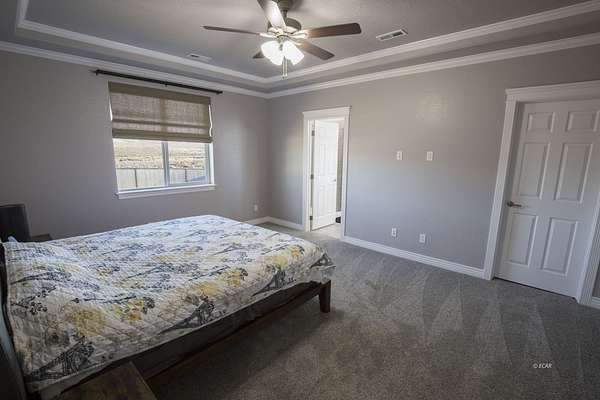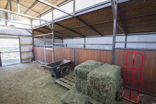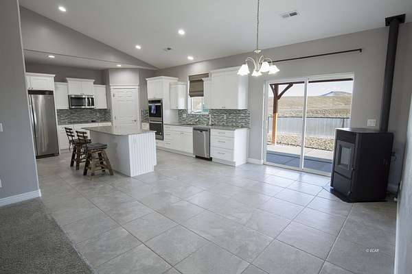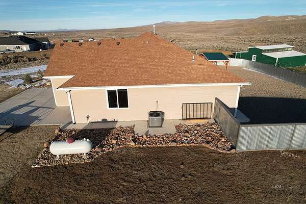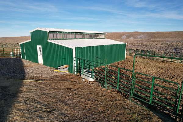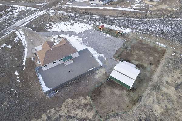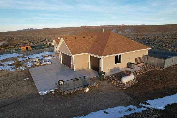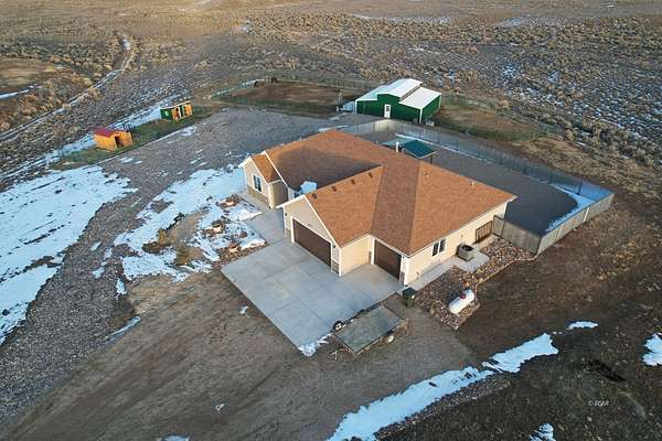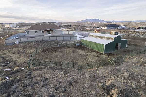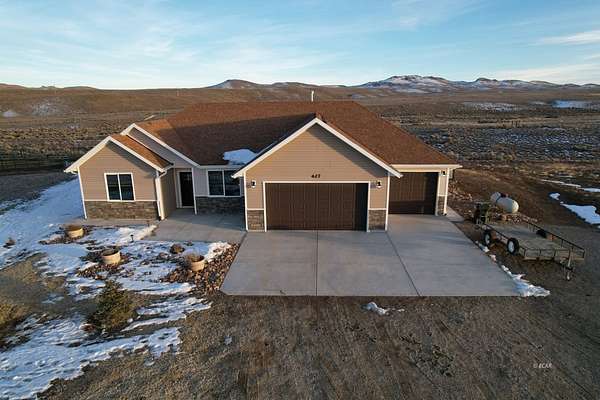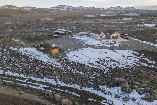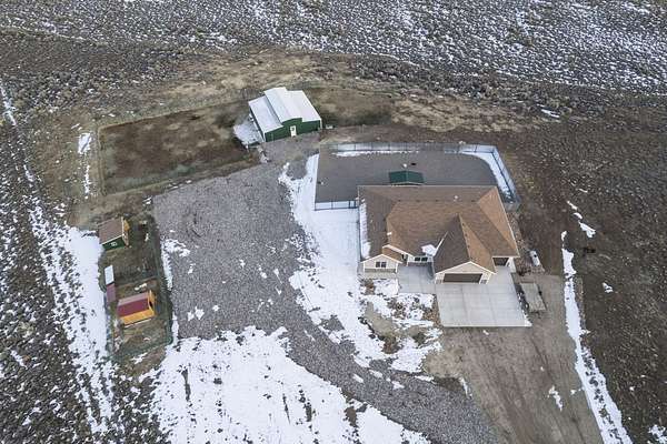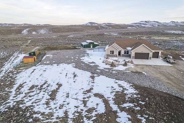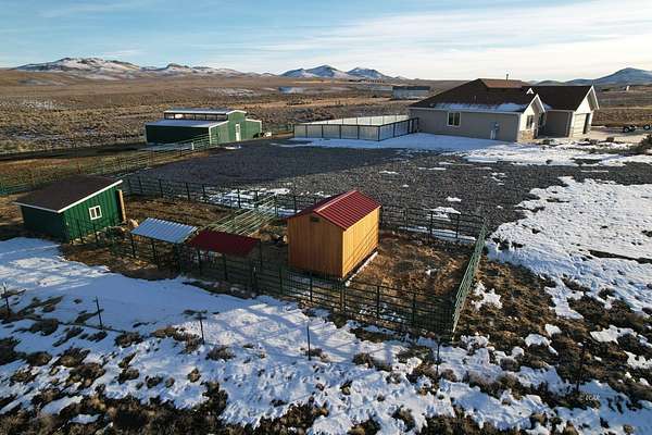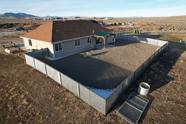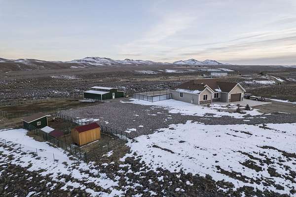 Discover the perfect blend of rural freedom and modern luxury in this 2021 Beck Built Home, perfectly positioned on 10 private acres with panoramic mountain views. This pristine 4-bedroom, 2-bath residence features its own domestic well, septic system, and fenced on 3 sides of the property. The exterior is highlighted by stone veneer accents, while the inviting interior boasts vaulted ceilings, central air, and elegant tile flooring throughout the kitchen, laundry, and bath areas. The gourmet kitchen is a chef's dream, featuring granite countertops, soft-close cabinetry with upgraded pull handles, a double wall oven, and full stainless steel appliances. The master suite offers a spa-like retreat with a custom rain shower head. Outside, the massive 36x36 metal barn includes three stalls and is fully wired with power, lights, and water-ready for equestrian use or a workshop. The grounds are farm-ready with two goat sheds and a fenced backyard featuring a custom pergola. This move-in ready homestead combines premium builder upgrades with incredible rural utility. There is a $500/yr road maintenance fee that is collected 1x a year. Tour 627 Stageline Loop today!