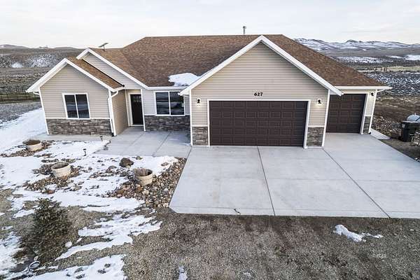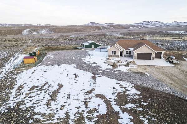 PRICED TO SELL! Discover the perfect blend of rural freedom and modern luxury in this 2021 Beck Built Home, perfectly positioned on 10 acres with panoramic mountain views. This pristine 4-bedroom, 2-bath residence features its own domestic well, septic system, and fenced on 3 sides of the property. The exterior is highlighted by stone veneer accents, while the inviting interior boasts vaulted ceilings, central air, and elegant tile flooring throughout the kitchen, laundry, and bath areas. The gourmet kitchen is a chef's dream, featuring granite countertops, soft-close cabinetry with upgraded pull handles, a double wall oven, and full stainless steel appliances. The master suite offers a spa-like retreat with a custom rain shower head. Outside, the massive 36x36 metal barn includes three stalls and is fully wired with power, lights, and water-ready for equestrian use or a workshop. The grounds are farm-ready with two goat sheds and a fenced backyard featuring a custom pergola. This move-in ready homestead combines premium builder upgrades with incredible rural utility. There is a $500/yr road maintenance fee that is collected 1x a year. Tour 627 Stageline Loop today!