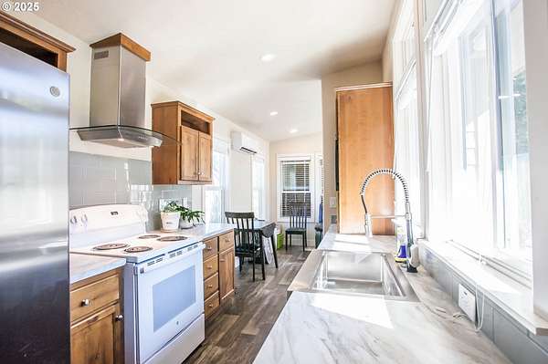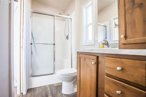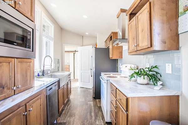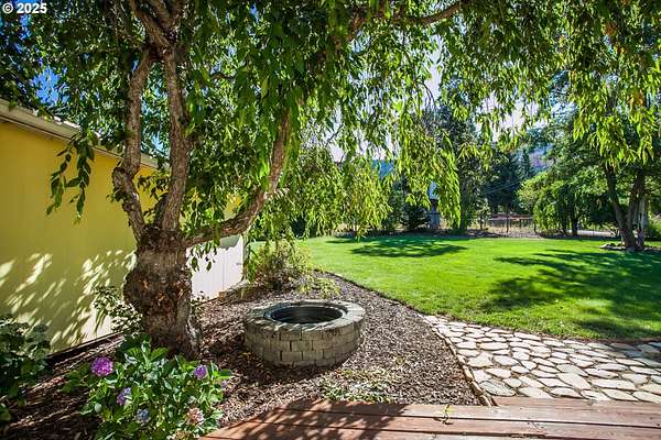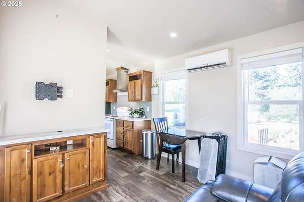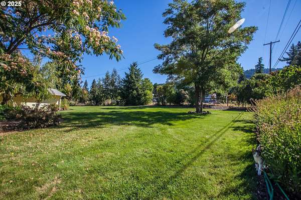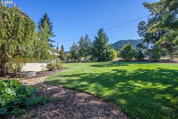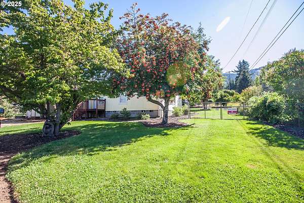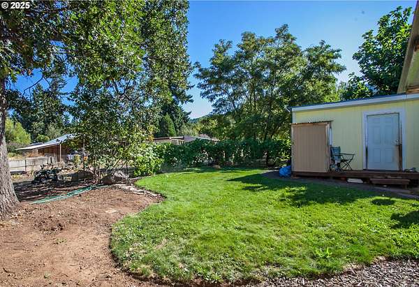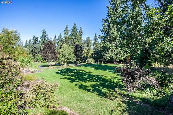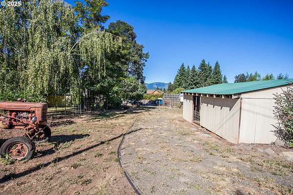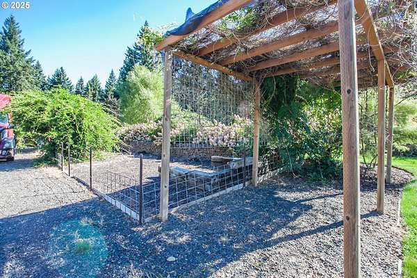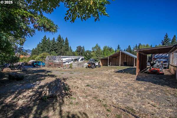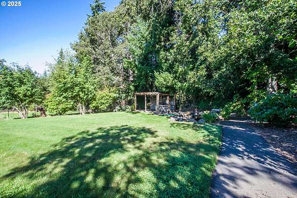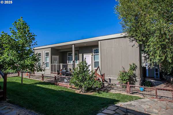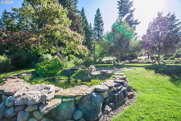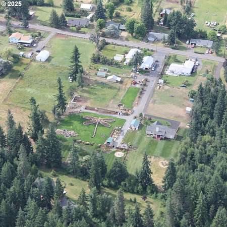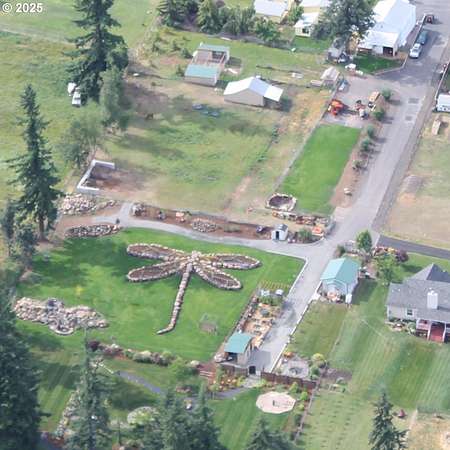 An oasis of possibilities with value in the 2.96 acre property priced far below the assessed value. The manufactured home has an open floor plan with several upgrades, a large primary suite and bonus room plus a den. The manufactured home is tenant occupied. There is room for friends and family to park RVs with hook ups. See listing addendum for sizes and features of multiple outbuildings. A fenced yard is ready for pets. A site to behold is the large dragonfly garden with the wings filled with wildflowers and walking paths bordered in trees. Curving walking paths are paved and surrounded by lush landscaping and green grass. There is an outdoor kitchen, three pergolas, three water falls and other ponds makes this property perfect for entertaining. The waterfall Koi pond is rimmed with large flat stones. Two additional waterfall features have gold fish. Beautiful Mt. Hood views in multiple places on the property. Storage galore - a 2 story 24'x 36' shop with a 10'x 20' office; 20'x 16' barn with two shed roofs 8'x16'; barn 16'x24'; six 10'x20' structures and a 48' shipping container. A Park Model RV is a perfect guest house or separate office with a 50 amp outlet and a covered porch. There is plenty of room for a large vegetable garden and additional parking for cars, boats and RVs. The barns offer workshop space. Create your own paradise in this versatile space. There is a horseshoe pit, play area, dance floor and numerous photo sites Enjoy the Mt. Hood view with friends and family. A stellar sight for a family reunion, birthday parties and special dinners.