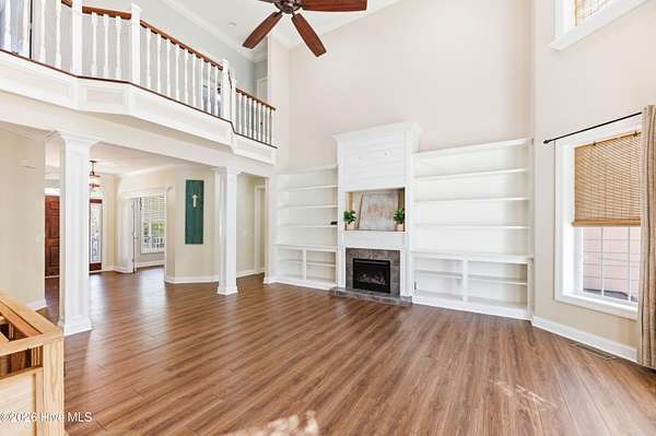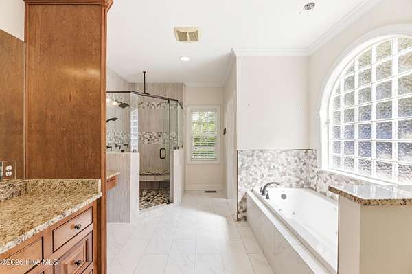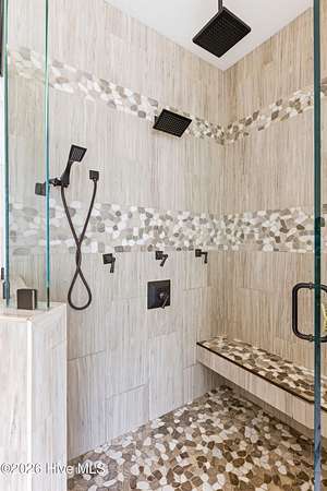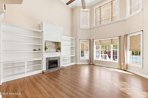 - Blinds/Shades, Bookcases, Built-In Features, Ceiling Fan(s), High Ceilings, Hot Tub, Kitchen Island, Master Downstairs, Walk-In Closet(s), Walk-In Shower, Whole-Home Generator