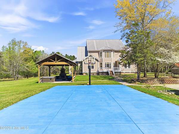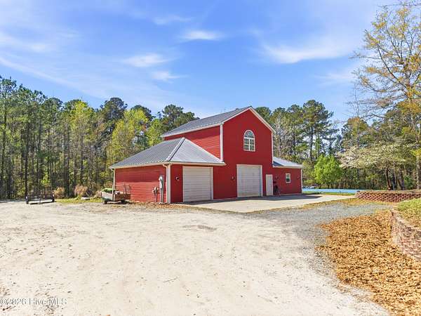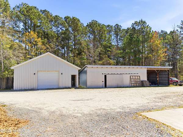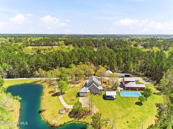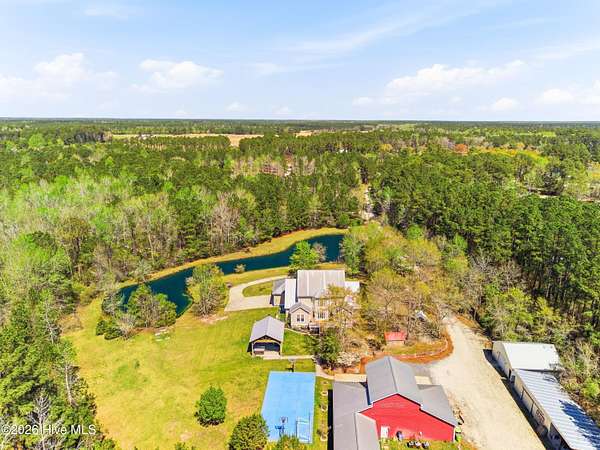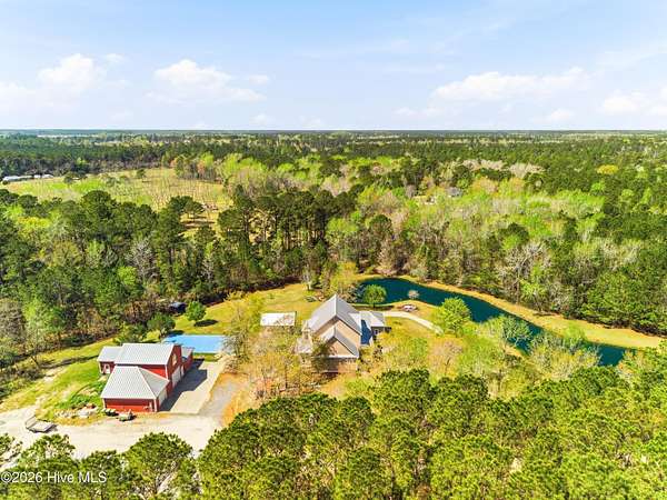 A rare opportunity to own a truly self-sustaining, private retreat in today's ever-changing world--this gated 8-acre estate offers the space, resources, and security that are becoming increasingly hard to find. Located less than 10 minutes from Ocean Isle Beach, it perfectly balances seclusion with convenience. An additional .79 acre parcel is included, expanding both your privacy and potential. (Parcel ID #) The 4-bedroom, 3.5-bath main home is built with longevity and resilience in mind, featuring a whole-house generator, encapsulated and climate-controlled crawlspace, full irrigation system, 60-year standing seam metal roof, tankless water heater and 2022 HVAC - designed for efficiency, durability, and peace of mind. Additional septic lines have been installed to accommodate up to 6 bedrooms. Inside, the home boasts a formal dining area and a spacious living room with soaring ceilings, creating an open and inviting atmosphere. The custom kitchen is equipped with beautifully crafted cabinetry and a gas stove, perfect for both everyday living and entertaining. The primary suite is conveniently located on the main floor and features a private bath complete with a jetted tub and a luxurious tiled walk-in shower. For added peace of mind, the seller has invested $17,000 in ADT security equipment, which includes a lifetime transferable warranty. The detached guest house and garage create a fully functional secondary living space, complete with a full kitchen, bedroom, bathroom, laundry room, living area, and a private gym with wet bar--ideal for multi-generational living or short term/long-term guests. The garage is built to handle full-size dump trucks and includes a 10,000 pound vehicle lift for any car enthusiast, along with a full bath. All workshops and garage spaces are fully heated and cooled for year-round comfort and usability. A dedicated woodworking shop and pole barn further enhance the property's versatility. The land itself is where this estate truly shines. Nearly 8 acres of usable, productive ground feature a fully stocked pond with freshwater clams, oysters, catfish, bream, crappie, bass, bluegill, and even massive carp--offering both recreation and natural beauty. Mature fruit trees, including raspberry, blackberry, blueberry, apple, and persimmon, provide seasonal harvests right from your own backyard. Designed for both lifestyle and self-reliance, the property also includes a full basketball court and an outdoor pavilion with a stone fireplace and hot tub- creating the perfect setting for relaxation after a day of fishing, working the land, or simply enjoying the surrounding wildlife. Enjoy the rare combination of privacy and convenience, all while being just a short drive from Ocean Isle Beach and its dining, shopping, and coastal charm. Private, resource-rich, and built for independence, this is more than just a home--it's a property that offers security, sustainability, and a way of life that feels increasingly valuable in today's world.