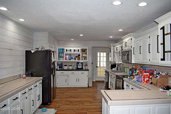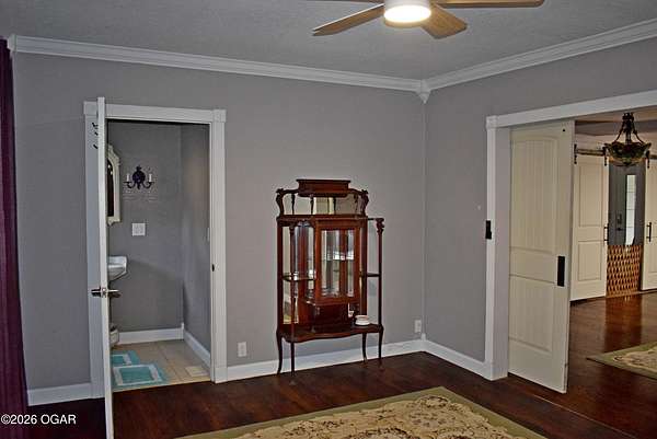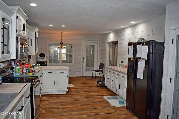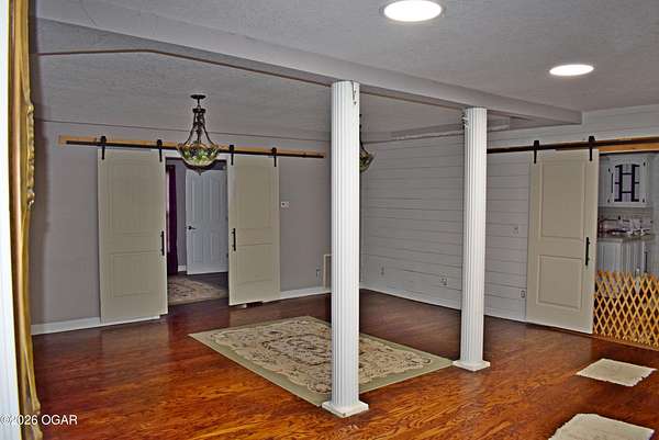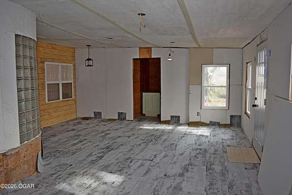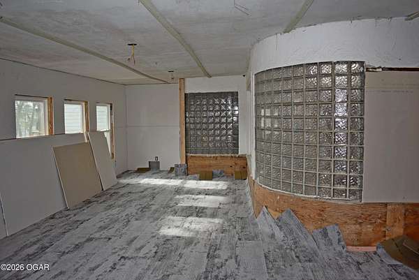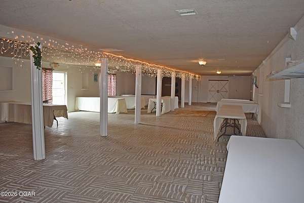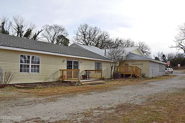 Unique out-of-town property lying on an outer road along West 7th Street / US Route 66 just West of Joplin, MO near Galena, KS. Carl Junction Schools. A total of 9,365 sq ft of building area brings wonderful opportunity for a large family, multiple households or a variety of businesses. The property consists of a park-like 3.3 acre lot with a 3980 SF house, approx. 954SF Apartment, and additional 2400SF of open space, formerly a wedding venue, usable for a variety of enterprises from large-scale hobbies to warehouse to any of a number of business ventures. The house has 4+ bedrooms, 2 1/2 baths, 2 Living areas, and a large office area in addition to several other flexible use rooms. The warehouse/venue area is open and well-lit with separate entrances as well as a secure door into the house. The apartment attached to the far North side of the structure has 1 bedroom, 1 bath, an attached garage, and is currently rented. An additional approx. 1023SF shop area is attached to the North of the apartment.