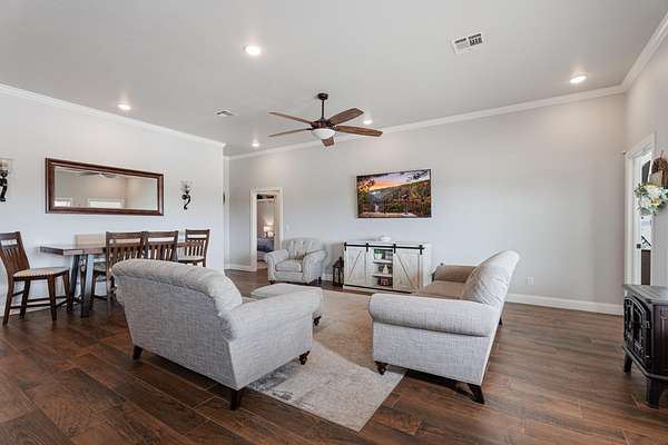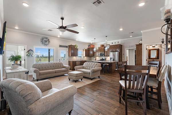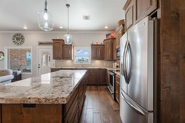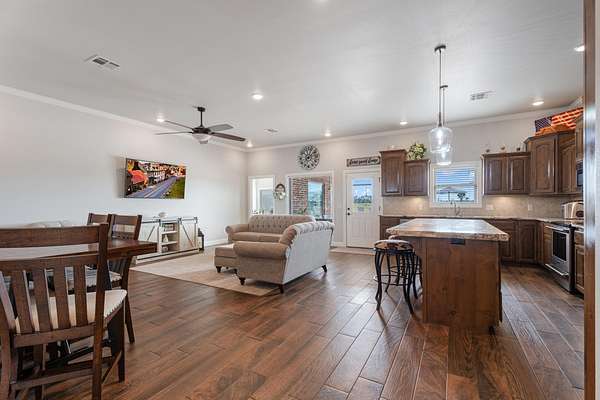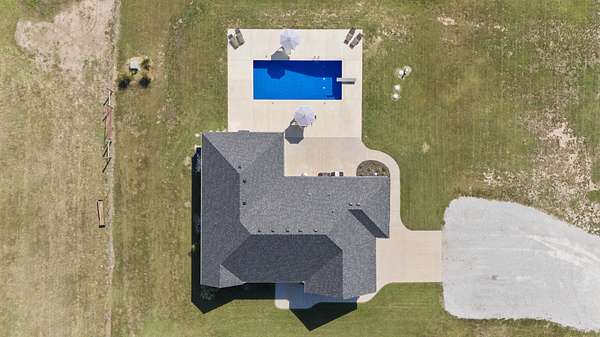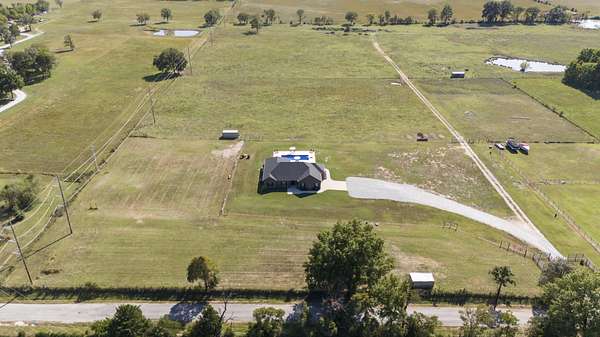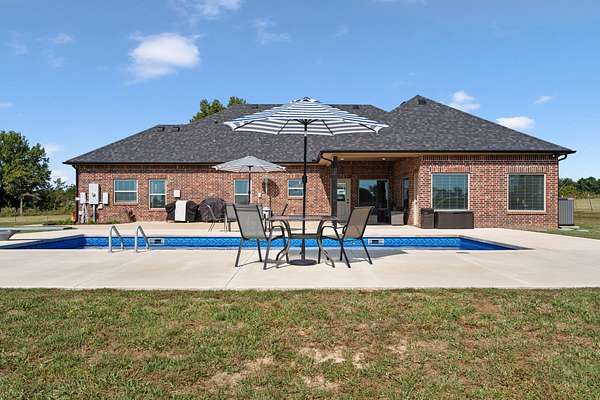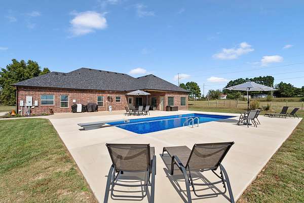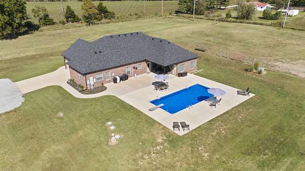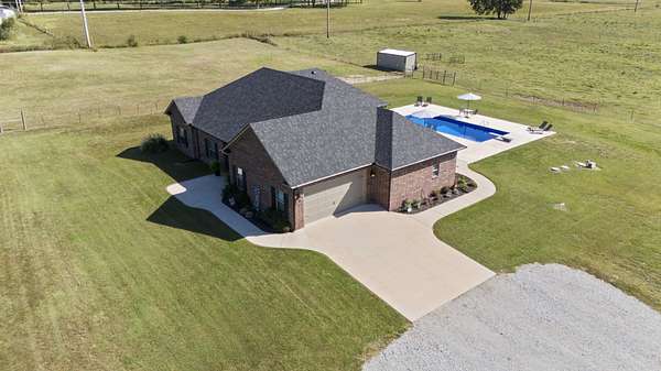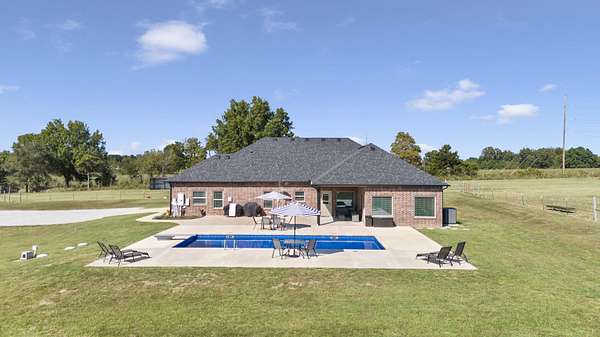 This well-maintained 4-bedroom, 3-bath all-brick home offers the perfect blend of space & comfort. Featuring a split floor plan, this home includes two living areas, perfect for entertaining or relaxing with family. You'll love the open-concept kitchen and living area, enhanced by 10-foot ceilings that create a bright, airy feel throughout. Recent upgrades include a new roof & gutters giving you low-maintenance living. Step outside to your 16 x 36 insulated liner pool with 9.5-ft deep end and diving board ideal for year-round enjoyment! The home sits on just over 2.3 acres, offering plenty of room to grow, roam, or graze while still being minutes from town. Plenty of room for a shop! Owner/Agent