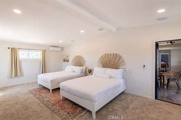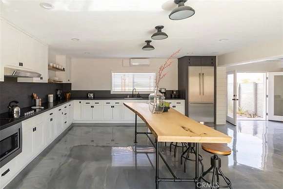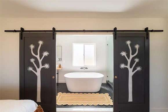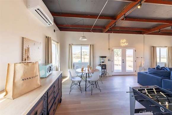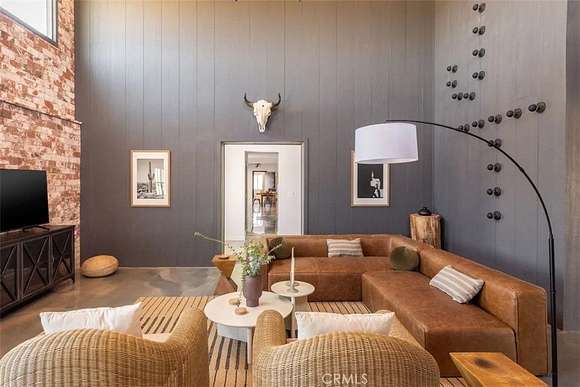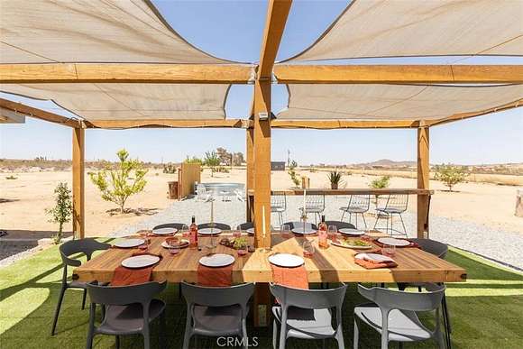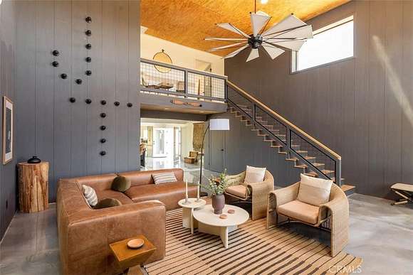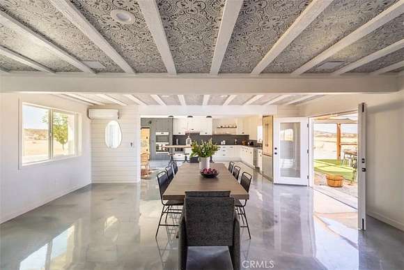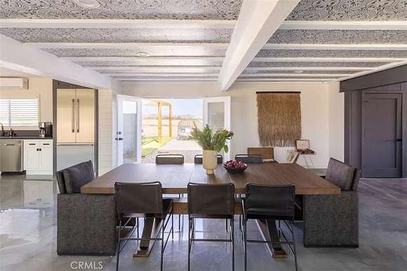 As you enter the main living area, you are greeted by soaring ceilings and top-of-the-line, custom-crafted designs and accents in every direction. The phenomenal layout maximizes privacy while creating an entertainer's paradise. The home comes fully furnished with designer-selected new and vintage pieces included in the sale, exuding Joshua Tree's artistic and quirky culture throughout.