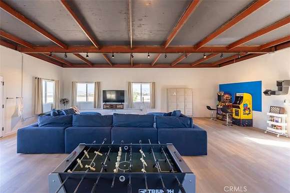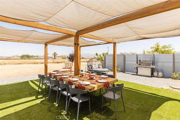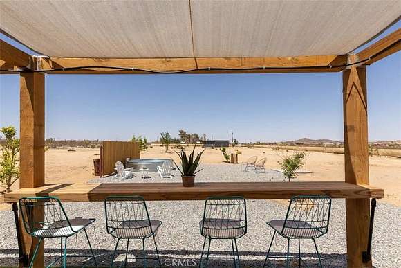 Prepare to be amazed by this extraordinary creation! Expertly designed and meticulously crafted, this unique Joshua Tree retreat is situated in a dream desert location. Nestled on nearly 5 acres land, fully fenced acres, this stunning estate offers breathtaking desert views and sunsets. It features 4 bedrooms, 5 bathrooms, and an oversized media room, plus a separate detached guest or creative space.