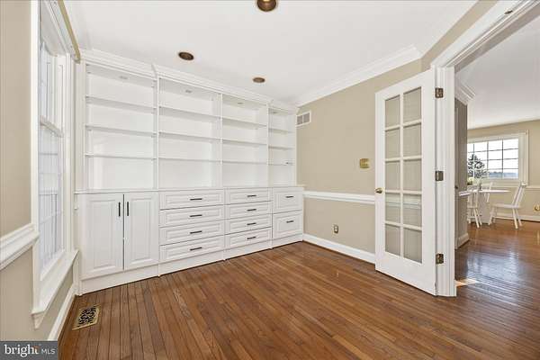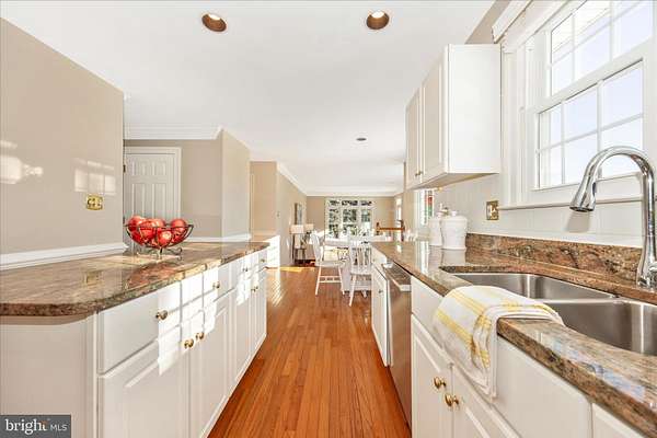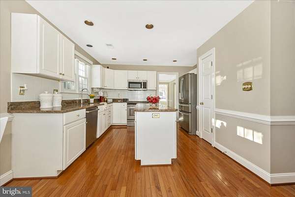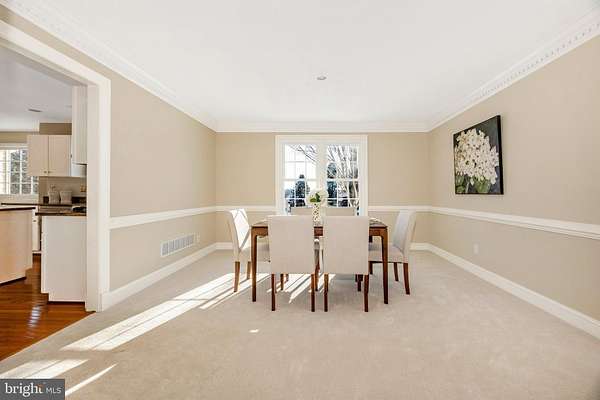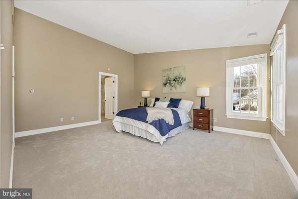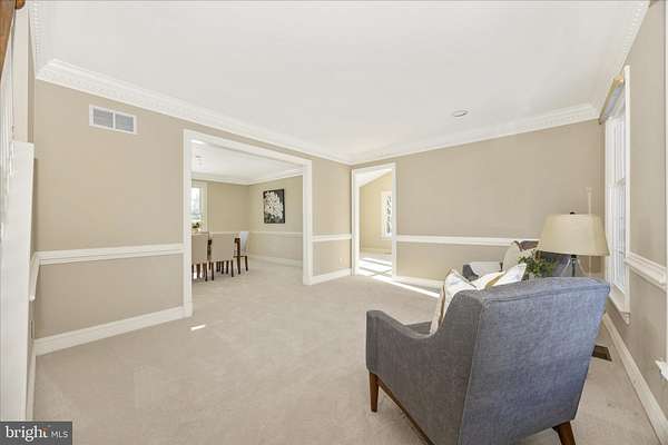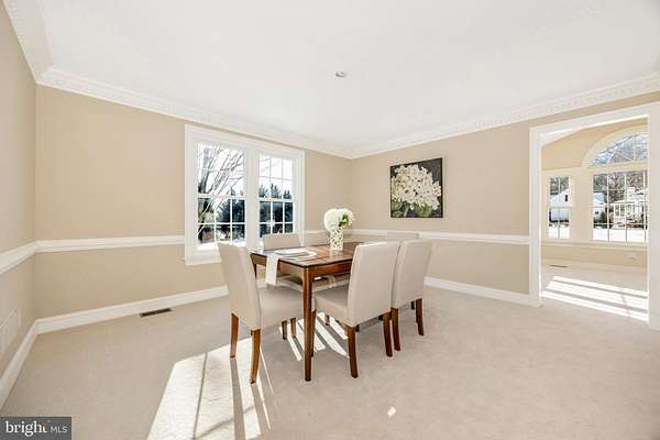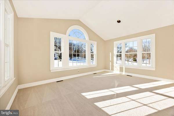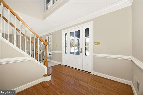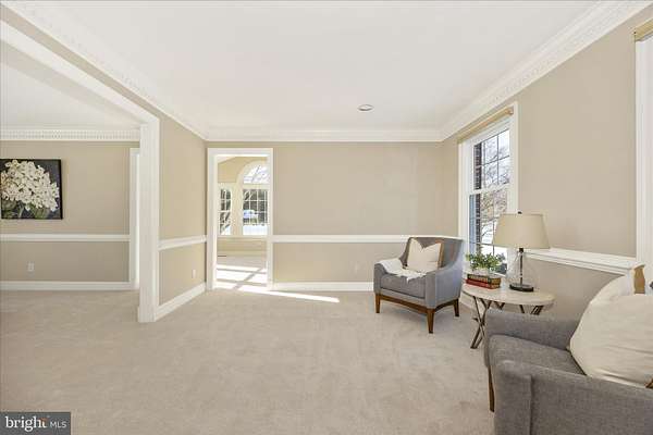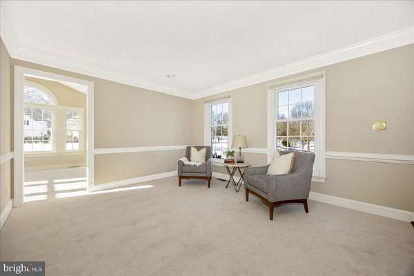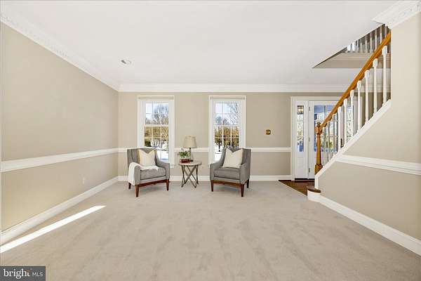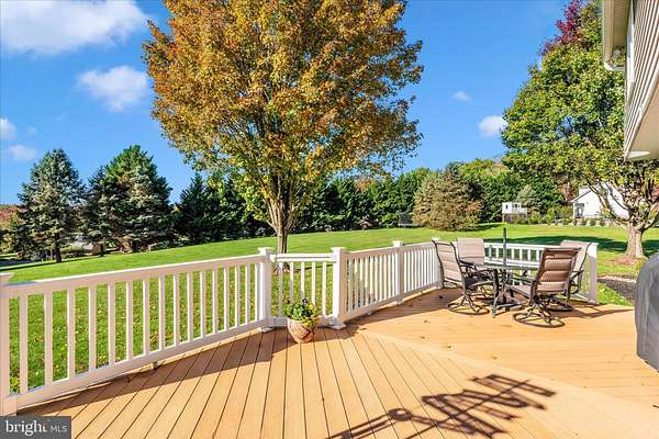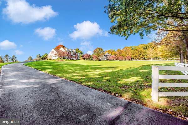 Set on a spectacular 2-acre lot in the highly sought-after Paddocks neighborhood, this exceptional home offers striking curb appeal, a stately presence, and a prime location directly across from The Links at Challedon Public Golf Course. A welcoming front portico and newer front door create an inviting first impression, setting the tone for the thoughtfully designed interior featuring fresh paint and plush new carpeting on the main and upper levels. Inside, the foyer is flanked by a private office, complete with custom built-in cabinetry, to the left and formal living and dining rooms to the right, all flowing seamlessly into a stunning sunroom with cathedral ceilings and abundant natural light-sure to become a favorite gathering space. The kitchen features white cabinetry, granite countertops, stainless steel appliances, and a center island, and opens to the breakfast area and family room, both surrounded by windows. The family room offers a cozy wood-burning fireplace and a French door leading to the rear deck. Handsome hardwood flooring spans from the foyer into the office, kitchen, breakfast area, family room and half bath which completes the main level. Upstairs, the primary suite is a true retreat with a dramatic vaulted ceiling, spacious walk-in closet, and an updated en-suite bath featuring separate vanities, a soaking tub, and a beautiful marble walk-in shower. Three additional bedrooms, a full bath, and a convenient laundry room complete the upper level. The fully finished lower level expands the living space with a wet bar and beverage refrigerator, ideal for entertaining, media, gaming, or exercise, along with a full bathroom and storage area. Outdoors, enjoy the expansive, open 2-acre lot with golf-course-quality lawn, plenty of room for gardening, recreation, and pets, complete with an invisible fence. The rear deck is perfect for grilling, entertaining, or simply relaxing while taking in the peaceful surroundings. Some updates include lots of fresh paint and brand new plush carpeting on the main and upper levels. Thompson Creek windows installed 2013; roof replaced 2009; HVAC 2011; water heater 2020; Firebox replaced 2022; well pump and water systems 2015. All of this offers the serenity of a private setting with the convenience of nearby golf, a full-service restaurant and pro shop, as well as easy access to Mount Airy, shopping, dining, and I-70. A rare opportunity in a coveted community-schedule your showing today.