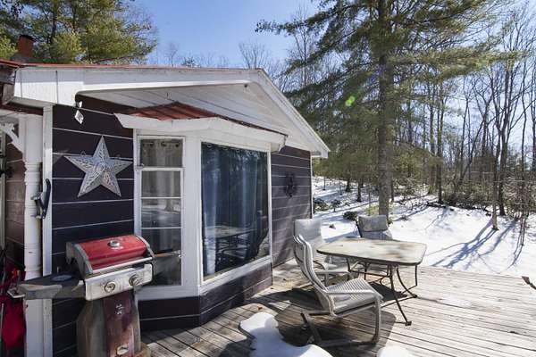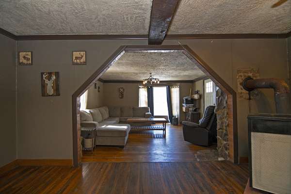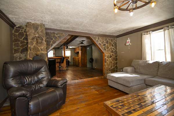 3-bedroom, 1-bath single-family cabin home on 1.76 wooded acres in Union. Offering approximately 1,200 sq ft, this property features an open floor plan, hardwood floors, exposed beams, and custom wood details throughout. Large windows provide natural light and wooded views. Outdoor highlights include a gazebo, deck, and gently sloping lot with exceptional privacy. Ideal for buyers seeking acreage, rustic character, and the opportunity to create a private retreat or investment property. Interior details include handcrafted wood cabinetry, wood plank walls, and a hardwood floor inlay. A stone-accented opening connects the living room and kitchen. The home is heated by a wood stove, which is the sole heat source. Buyers may retain wood stove heat or install an additional heating system. Property is being sold in its current condition and will require cleaning, repairs, and updates. Suitable for buyers prepared to make improvements and add value. The nearby historic town of Union has restaurants, a public pool, shopping, services, a summer Farmers Day, an annual Autumn festival, and a Christmas parade. Union is also close to Moncove Lake State State Park which offers a variety of outdoor recreation. Close by, Lewisburg, voted the Coolest Small Town in America, offers an almost endless variety of events including the Lewisburg Chocolate Festival, Taste of our Town, the WV State Fair, and the Lewisburg Literary Festival to name just a few. Lewisburg is also the home to several fine dining restaurants, fun local eateries, a variety of shopping in the walking downtown, and easy access to outdoor retreats such as the Greenbrier River Trail.