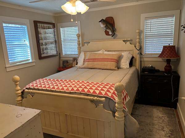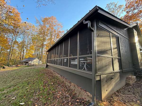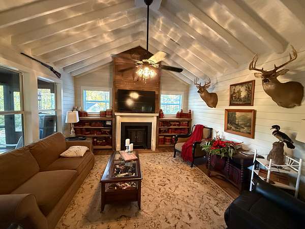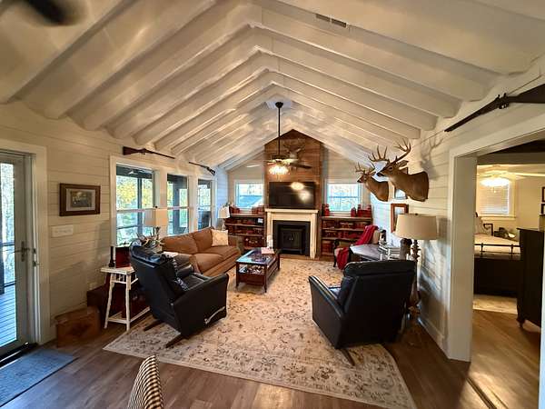 The property features a well-built 1,100± square foot cabin constructed in 2014. The cabin includes a living room with an open-plan kitchen, two bedrooms, one bathroom, a laundry room, and a large screened-in porch overlooking the pond—an ideal setting to relax and enjoy the surrounding landscape.