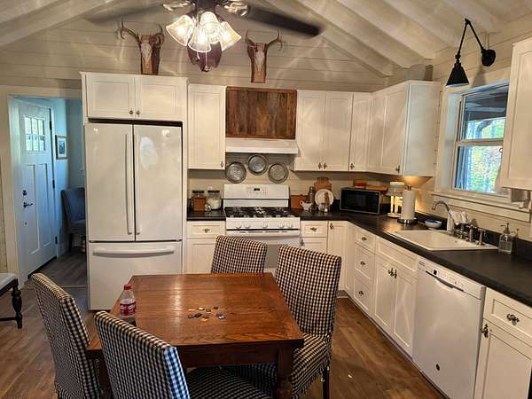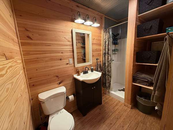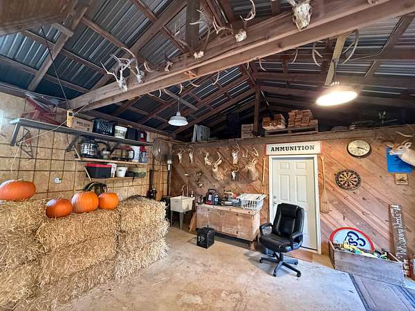 Additional improvements include a 24' x 60' shop with a finished 24' x 12' bunkroom and an additional finished bathroom, providing excellent space for guests, storage, or equipment.