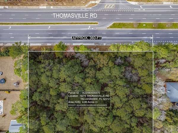 This 4.80 AC parcel of prime real estate offers an ideal location for a church and promising redevelopment potential for builders and developers. Engineered site plans for a church have been fully approved. Use of the current plans would eliminate the time-consuming permitting process and save a church user thousands of dollars. Additionally, the statewide changes to stormwater requirements, effective December 28, 2025, would not be enforced. Comprised of flat, buildable land, this property offers developers, builders and investors the opportunity to seize a lucrative development opportunity. The property is located on the northbound side of Thomasville Road; a high-volume, major arterial road with over 63,000 cars passing daily. The property has been issued an approved Environmental Management Permit (EMP), permitting the property to be used as a church. In addition to receiving the EMP, a Permitted Use Verification (PUV) application has been submitted to the City of Tallahassee. The PUV is the first step in the site and development review process. Developers will need to proceed with the permitting process to receive full approval. This site delivers a great opportunity for investors, builders and developers to grow their portfolios in one of the most desirable areas of NE Tallahassee. Persimmon Hill and the FSU Credit Union are located directly across the street on the southbound side of Thomasville Road. Persimmon Hill is a mixed-use development that offers a variety of amenities, such as prominent local restaurants, retailers, and Class A office space. Additional amenities can be found nearby in Bannerman Crossings, offering local boutiques, restaurants, and so much more, including Millennium Nail and Day Salon, Hanger 38, and Lucky Goat Coffee Co. The large mixed-use project by Chiles High School will bring Culver's, Waffle House and Dutch Kitchen to the NE side of town, as well as a 750+ unit residential development, Bradford Hills. The property's convenient location, high daily traffic counts, excellent exposure and ample street frontage on Thomasville Road, allow for easy ingress/egress, and provide a wonderful opportunity for a church or residential development.