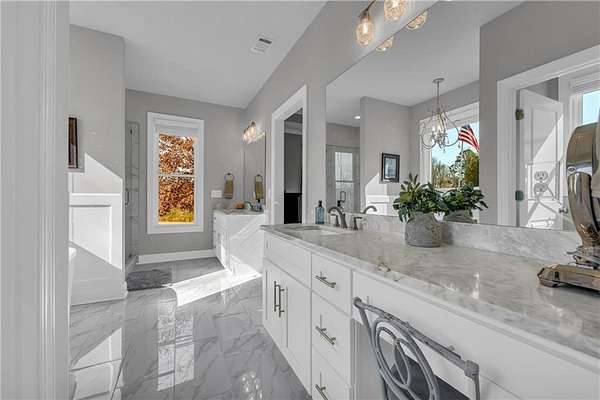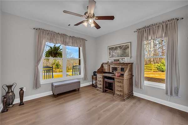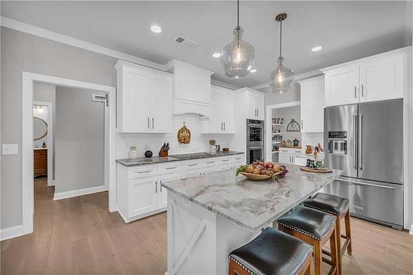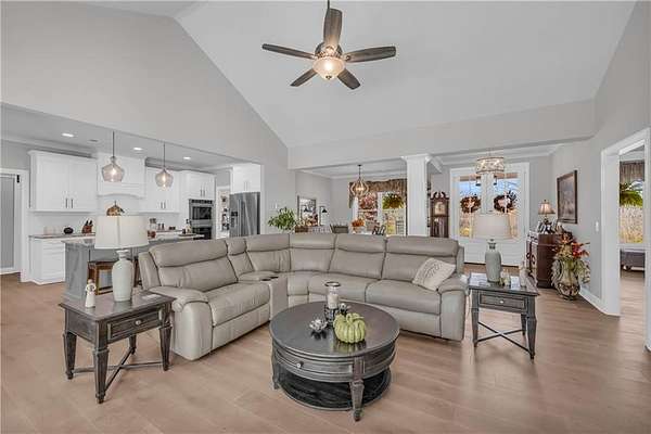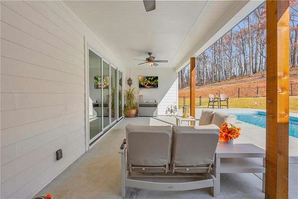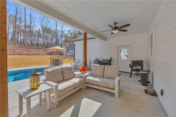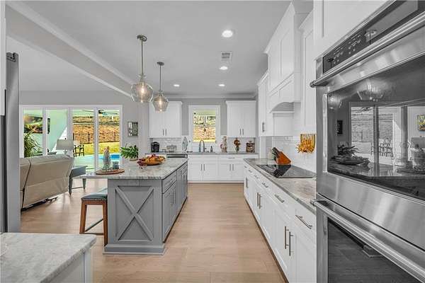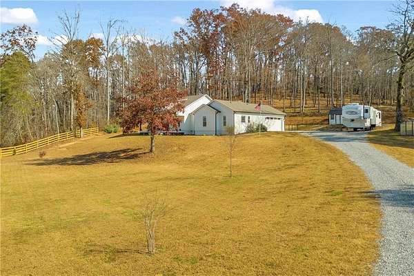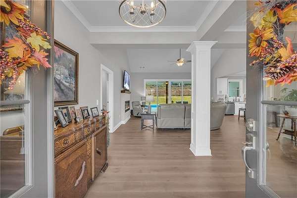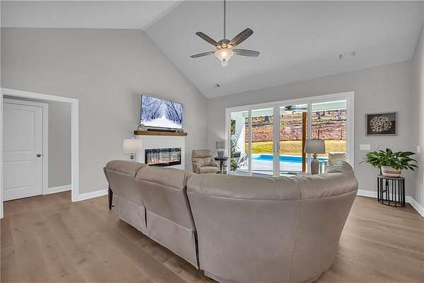 Discover a modern ranch retreat nestled on 2.43 private acres, offering a rare mix of convenience, privacy, and room to live wide open. Built in 2022 and filled with natural light, this 3 bedroom, 2.5 bathroom home spans 2,044 square feet and feels connected to its surroundings from the moment you arrive. The heart of the home brings everyone together with an inviting living area, an electric fireplace, and a large slider door that creates a seamless indoor to outdoor experience. The kitchen is beautifully appointed with double ovens, great prep space, and views out to the backyard. The layout is thoughtfully designed with a laundry room that connects directly to the primary suite closet for easy everyday living. Step into your own outdoor haven. A saltwater in-ground pool, fully fenced yard, lush sod, and peaceful wooded views make this space ideal for unwinding. Deer often wander through the backdrop, adding a sense of quiet and calm you don't often find. The property also includes an RV hookup, a storage building, a generator hookup, and an oversized parking area perfect for guests, boats, RVs, or extra vehicles. Additional features include a two-car garage and a whole-home water purification system. With no HOA, you can truly make the property your own. A rare opportunity to enjoy modern living, privacy, and plenty of space both inside and out.