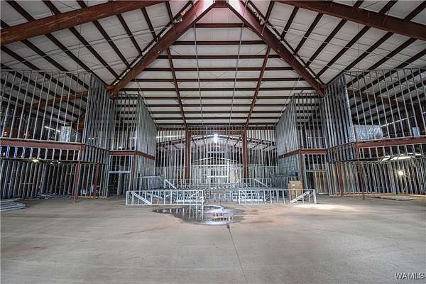 This property offers a unique opportunity with its unfinished structure and prime location. Originally built to serve as a church, the building has been studded according to architectural blueprint, including balcony for seating, but the exterior walls covered with hardy boards, and essentials elements such as bricks, windows, and exterior doors have never been installed. The interior is completely unfinished, lacking interior walls, doors, flooring, electrical, plumbing, and heating and cooling system. The purchased heating and cooling units are ready to be installed and will convey with the building. Situated on a 3.80 acre lot with over 300 feet of road frontage with a large parking lot, This site provides endless possibilities whether as a church, community venue, school, or other visions you may have. The potential is only limited my your imagination.