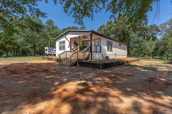 Charming Country Retreat on Over 7 Acres! Discover the perfect blend of modern comfort and peaceful country living with this nearly new two-bedroom, two-bath home, set on just over seven beautiful, mostly fenced, acres in Gladewater ISD. Built only two years ago, this home offers a fresh, move-in-ready space surrounded by open skies and scenic views. Inside you will find a thoughtfully designed floor plan with a spacious living area, a modern kitchen featuring contemporary finishes, and two comfortable bedrooms, each with easy access to a full bathroom. The primary suite offers a private retreat with its own bath and plenty of closet space. Outside, there is room to roam, garden or keep animals. Land is almost completely fenced with the exception of a small section at the back of the property. Whether you dream of a hobby farm, a private getaway, or a peaceful place to call home, this property offers endless possibilities. Enjoy the privacy of country living while still being just a short drive from city conveniences.