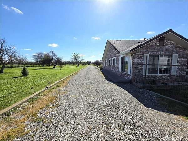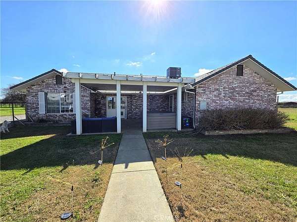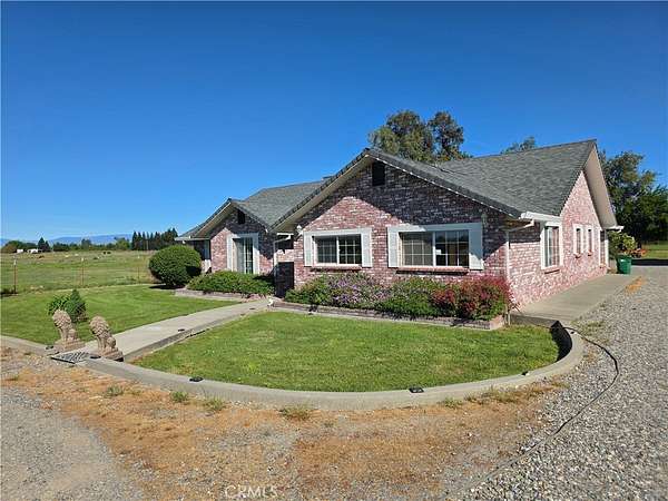 Set on 5.44 usable acres in a prime country location, this beautifully updated custom home offers refined rural living with space for horses, cattle, goats, and more. The 3-bedroom, 2-bath residence features over 2,200 sq ft of thoughtfully designed living space, including two expansive living areas—one ideal as a game room, media room, or additional entertaining space. The remodeled kitchen showcases granite countertops, custom cabinetry with pull-outs, stainless accents, and a sun-filled dining nook overlooking the covered patio. Both bathrooms have been tastefully updated, and the spacious primary suite offers direct patio access for seamless indoor-outdoor living. Recent upgrades include a new roof, new HVAC, newer plumbing and plumbing fixtures throughout, and a new pellet stove for added comfort and efficiency. The all-brick ranch-style exterior complements the fully fenced pasture, horse coral stall and cover, horse training pen, oversized detached 2-car garage, RV hookups, and Orland Users Water District service—creating an exceptional blend of functionality, and peaceful country living. Also don't miss the array of fruit trees including pomegranate, plums, pears, lemon, apple, apricot, persimmon, and pistachio. Buyers to verify any and all information to their satisfaction.