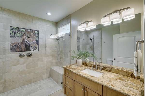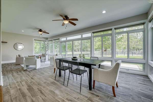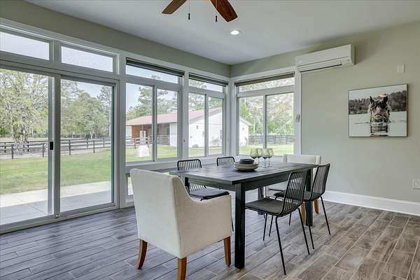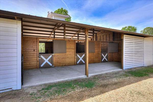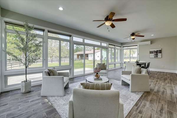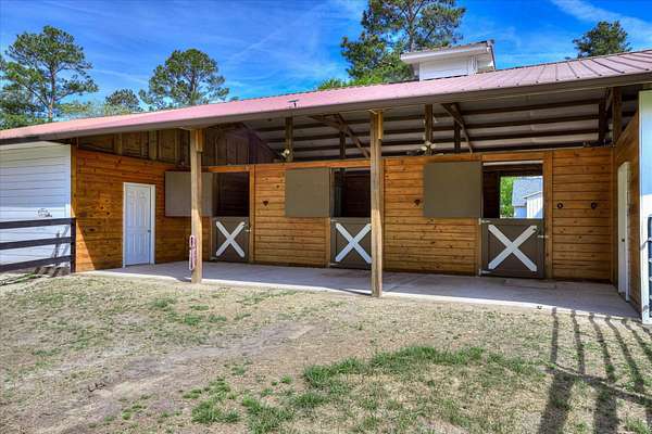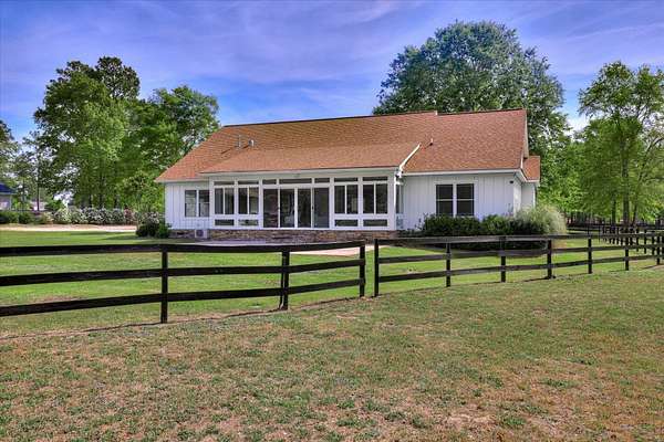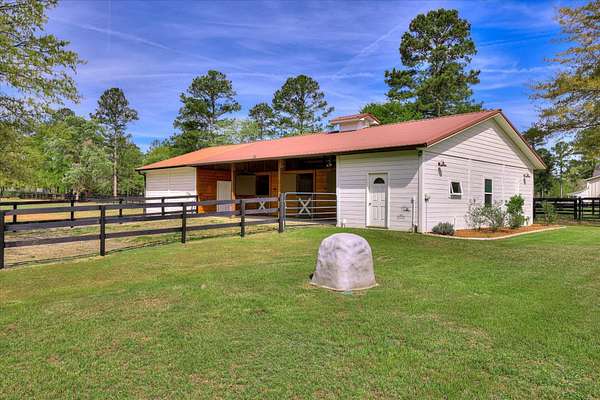 Equestrian Property in Three Runs Plantation - 5 Acres with Barn & Direct Trail Access Well-maintained 3BR/3BA ranch-style home built in 2015, offering approximately 2,120 sq ft on 5 acres in Three Runs Plantation. The property is fully fenced with no-climb wire and features irrigation around the house, driveway and the front pastures, plus irrigation along the Carolina Sapphire tree line at the rear, all complemented by beautiful mature hardwood trees that enhance both privacy and setting. The home offers a flexible layout with an open kitchen featuring granite countertops, a center island, and breakfast bar, along with space for formal dining, a home office or a sitting area. The living area includes a gas fireplace, and each bedroom has its own full bathroom. Bathrooms have been updated, including a custom tiled shower in the primary suite. Equestrian amenities include a 3-stall barn (12x12 stalls), plus a large run-in shed in the back pasture, a wash bay with hot/cold water, a 12x24 climate-controlled tack/feed room with cabinets and sink, and a 36x20 workshop. Additional features include a newer 5 HP well with a flow regulator and automatic gates, and direct access to the community's trail system. Move-in ready and well-suited for both horse owners and those seeking acreage in a well-established equestrian community. Three Runs Plantation offers equestrian amenities, including two riding complexes, each with a mirrored dressage arena, a jumping arena, and a grass jump field with a water feature. Additional community amenities include a clubhouse, pool with a cabana, and an activity center with a fitness room. Buyer pays a one-time Capital Contribution fee of $3,646 to the HOA at closing.