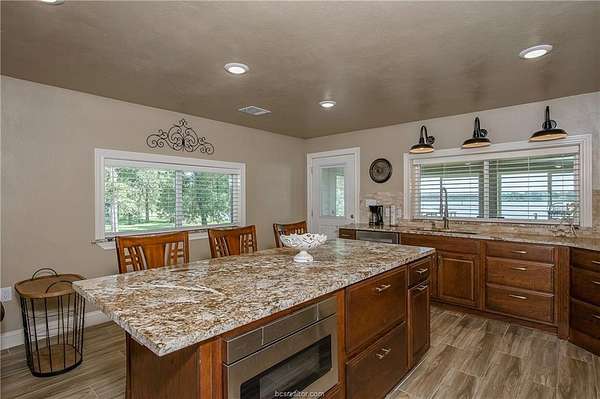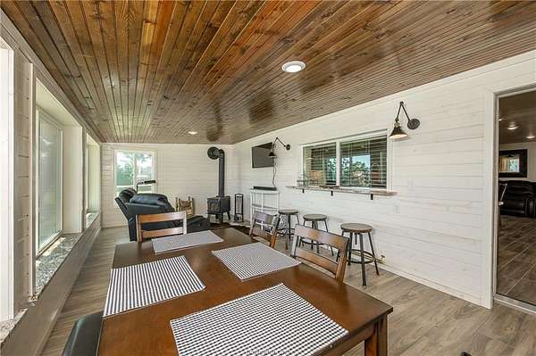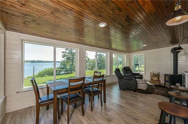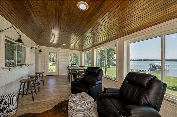 Newly renovated Lake Limestone waterfront home with 210+ feet of shoreline on 2.13 acres across three lots. Enjoy lake life with a covered pier, adjustable boat lift, and endless opportunities for fishing, boating, kayaking, and swimming. Boat slip easy fits 22' boat. 2,300+ sq ft covered carport provides ample protection while still allowing you to enjoy the lake views and outdoor activities. Features include an enclosed sunroom with second-floor deck, wood-burning stove, and a stunning kitchen with 36" Thor gas range, and matching refrigerator. leathered granite, and stainless finishes. All new electrical, plumbing, windows, doors, flooring, and a Rheem tankless water heater. Oversized primary bedroom with lake views, abundant storage, and a peaceful neighborhood- weekend escapes or full-time living.