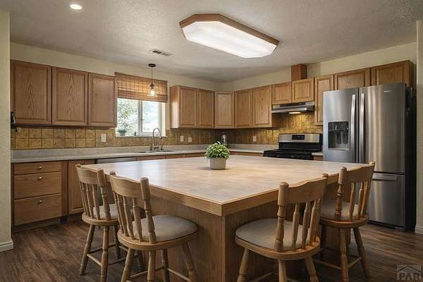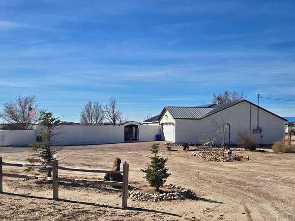 Located in Pueblo West North, this 3-bedroom, 2-bath ranch-style home sits on 2.5 acres and offers 2,240 square feet of above-grade living space - a combination of size, space, and value that is increasingly difficult to find in this area. Unlike many properties with smaller main levels and unfinished basements, this home provides generous single-level living with an open-concept layout designed for everyday use and gatherings. The spacious kitchen features a large island, walk-in pantry, and direct access to an enclosed seasonal sunroom and covered patio. The adjacent family room includes a wood stove for added warmth and character. All bedrooms are well-sized, including a large primary suite. An additional flex room offers options for office space, expanded laundry functionality, or mudroom use. This custom-built home was constructed with steel framing and 2x6 exterior walls and includes updated windows, PEX plumbing in conduit with a centralized water manifold system, a durable metal roof, and a whole-house generator plug for added preparedness. The solar panel system provides long-term energy savings for the next owner. The oversized attached two-car garage includes a 19x16 workshop area. Outside you'll find mature landscaping, a stucco privacy wall creating a courtyard-style backyard, garden area, dog run, storage sheds, RV carport, mountain views, and space for horses. This home represents exceptional value compared to surrounding properties. Set your showing today!