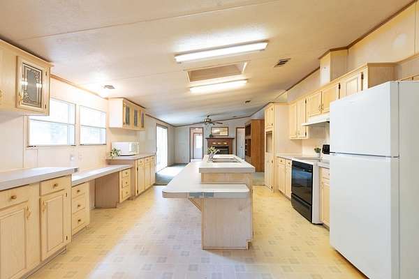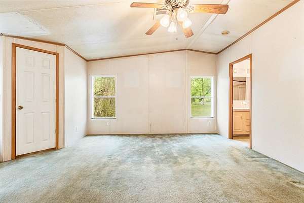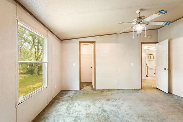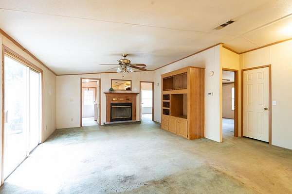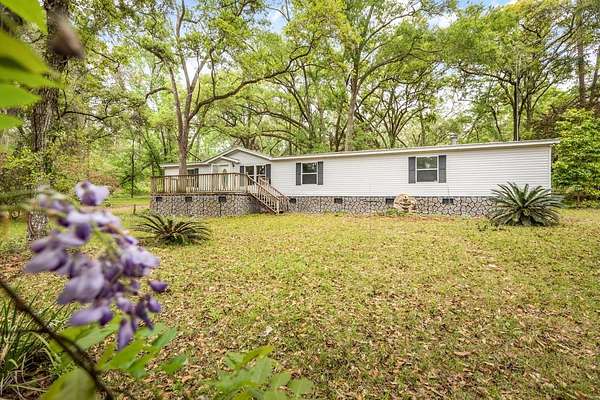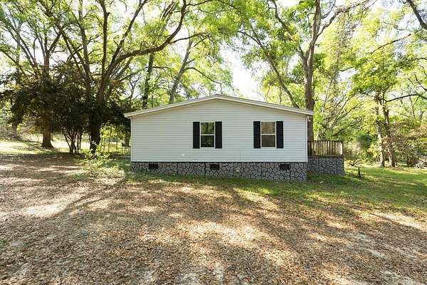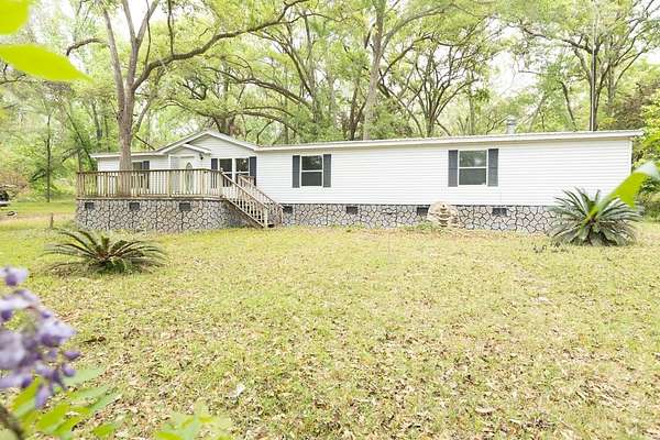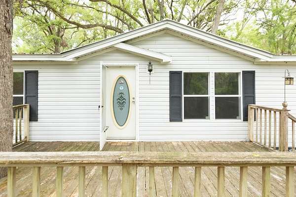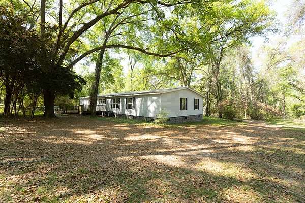 2,280 square foot, 1998 mobile home on 5.01 acres located in Aucilla Shores, in Greenville, FL (Jefferson County). The expansive layout includes (4) bedrooms, (3) full bathrooms, a living room, dining room, and separate family room. The Master Bedroom includes an en suite, perfect for a home office or additional private living space, double walk-in closets, and a large bathroom with a shower stall, a garden tub, and a private water closet. All other bedrooms are of a generous size and could also serve as flex space. The Kitchen is complete with range, dishwasher, microwave and refrigerator. The Living Room has a nice built-in which could serve as a dry bar or for storage. The Family Room has a built-in entertainment center and a wood-burning fireplace. There is a deck on the front porch, and a large patio off the back sliding doors, which wraps around to the side entry door, which brings into the laundry room. There is also a usable shed. *Note - this an inherited home, so history is limited. A full home inspection will be needed to determine further details and ages of specific items.