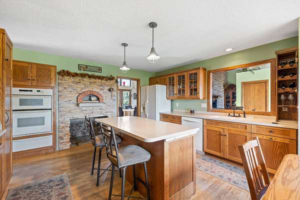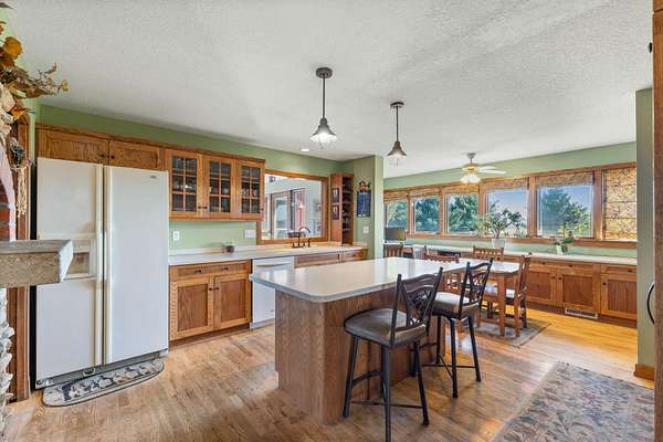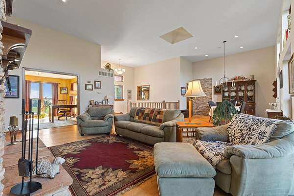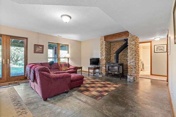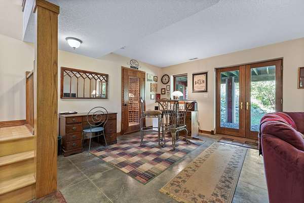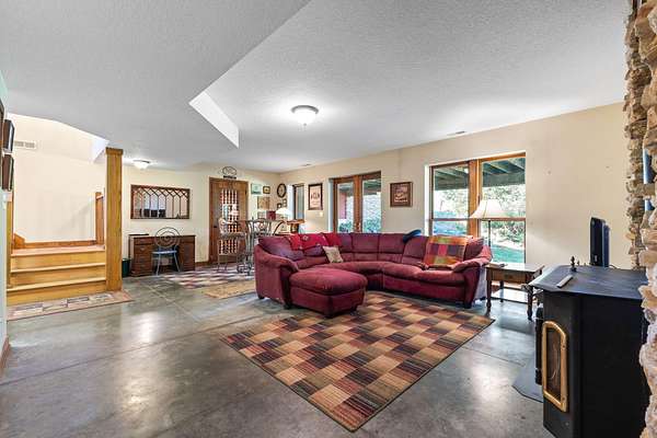 629 Sunset Pl is tucked away on a secluded private lane and set on over seven acres that stretch beyond a peaceful, meandering creek. This custom-built, award-winning concrete home offers a rare blend of privacy, elegance, and modern comfort with over 3,700 finished square feet of beautifully finished living space. Designed for strength, efficiency, and lasting quality, its solid concrete construction ensures exceptional quiet, energy savings, and low maintenance. Inside, the large kitchen features warm oak cabinetry, a center island, and a Magnaini wood-fired pizza oven from Italy, perfect for unforgettable gatherings. The sun-filled living room boasts nearly floor-to-ceiling windows, hardwood floors, and a dramatic 48-inch fireplace to anchor the space. A bright, versatile office or den with custom built-ins and sliding pocket doors offers a peaceful retreat or private workspace. The main-floor primary suite includes an ensuite bath, dual walk-in closets, and access to a screened porch and spacious deck with wooded views. The main-floor laundry, drop zone, and flexible sunroom add everyday ease and convenience. The walkout lower level features a second kitchen, temperature-controlled wine room, two bedrooms, a full bath, and flex spaces ideal for a theatre, gym, playroom, or ample storage. Outdoors, enjoy the established garden, expansive yard, and the tranquil beauty of nature--just minutes from town yet worlds away from the ordinary.