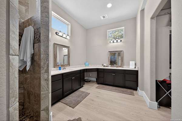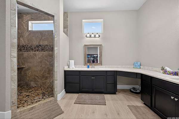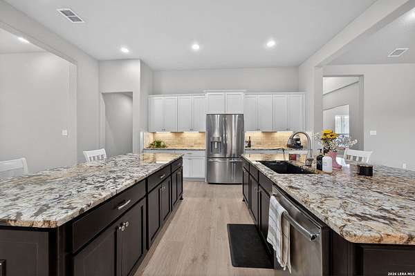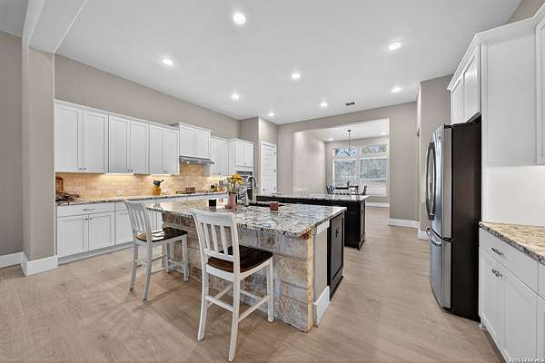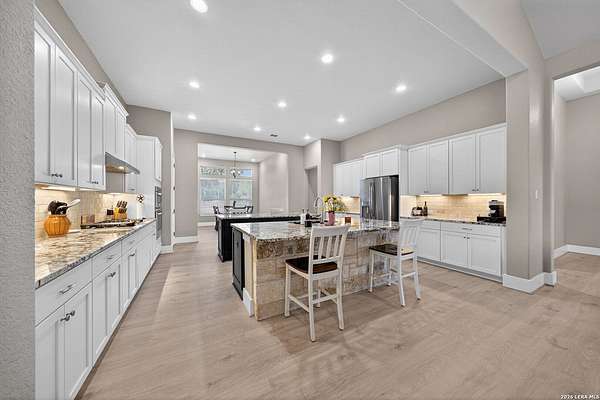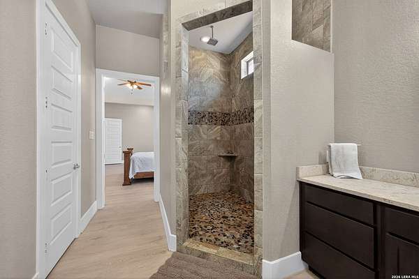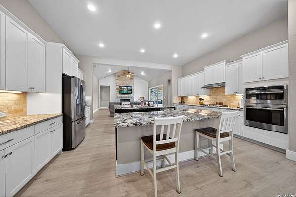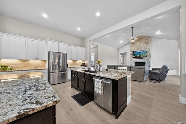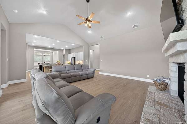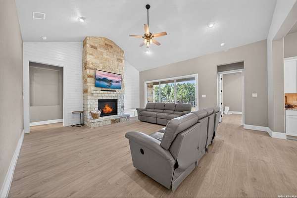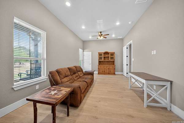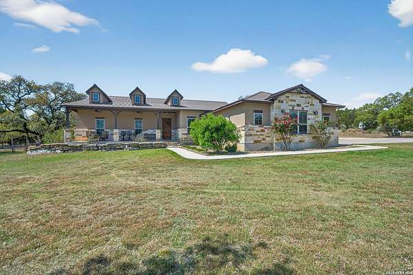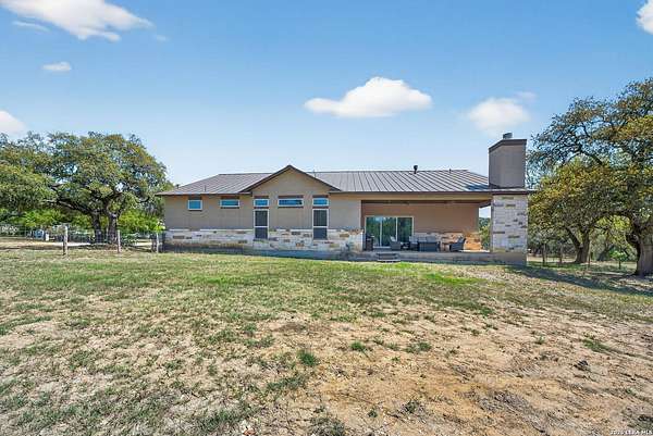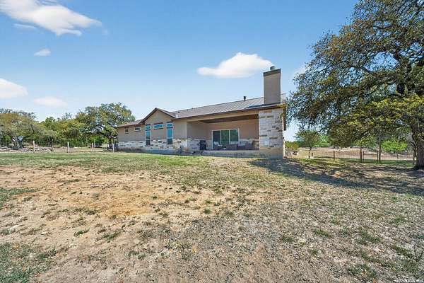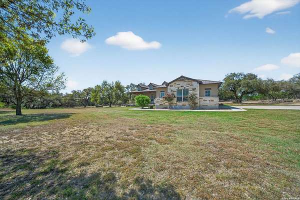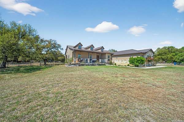 Luxury Hill Country Living on 4.7 Acres with Private Pond & Well. New Flooring installed March 2026. Experience the best of Texas living in this stunning 4-bedroom, 4.5-bath custom home-all en suite bedrooms-in a serene, private setting. Built in 2017, this single-story masterpiece offers 3,229 square feet of thoughtfully designed space with an open floor plan, polished concrete floors throughout, and soaring ceilings that flood the home with natural light. The heart of the home features a spacious living area with a cozy fireplace and an entertainer's dream kitchen-complete with double oversized islands. The refrigerator conveys, and a pool table is also available, making move-in easy and fun. Step outside to enjoy the covered back patio with its own fireplace, perfect for relaxing evenings. Notably, this property includes the only active permitted water well in the neighborhood and an aerobic septic system-rare features that provide both value and self-sufficiency. Additional highlights: Oversized 2-car garage with 8 ft doors. One-owner home with meticulous care Spacious double lot with plenty of room for outdoor living and recreation. Don't miss this exceptional opportunity to own a slice of the Hill Country with modern comfort and piece of hill country land.