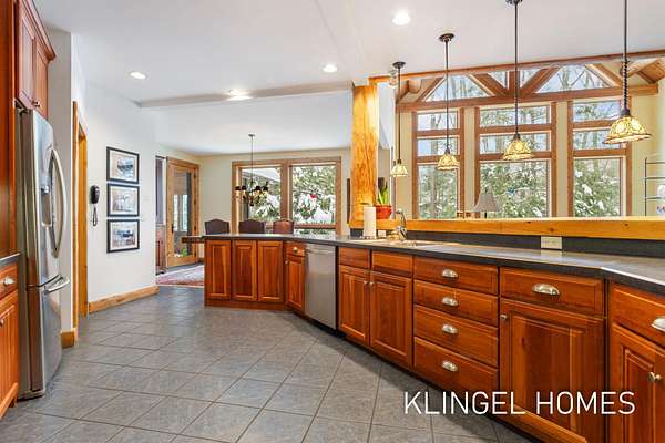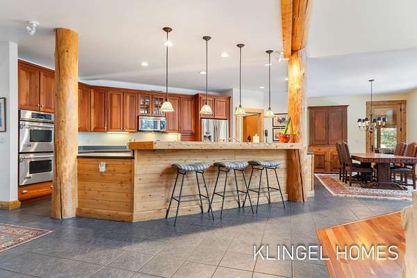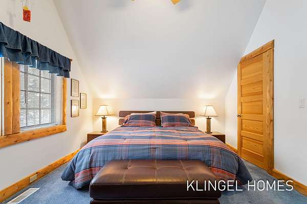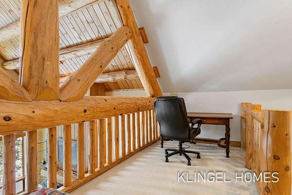 Welcome to 6290 Scenic Woods Circle N, Muskegon! Rustic elegance and exceptional craftsmanship define this stunning cedar log home, privately set on 3 wooded acres with towering evergreens and frontage on Muskrat Lake. Surrounded by protected wetlands and abundant wildlife, the setting offers a peaceful, natural retreat. Built with uncompromising quality, this Mission-style residence features Amish-milled beams, rough-cut pine, hand-shaved cedar, cherry and slate finishes, and custom hickory cabinetry. The dramatic Great Room boasts 27' cathedral ceilings, floor-to-ceiling windows, and a striking stone fireplace. The chef's kitchen features high end stainless steel appliances and opens to the beautiful dining area and cozy 3-season room. Also on the main level is the primary suite with it's own fireplace, spa-like bathroom and a spiral staircase that leads to a loft office. The upper level presents an additional sitting area that overlooks the great room along with 3 bedrooms and 1 full bathroom. As you head to the expansive fully finished lower level, you will find an additional living area with a walkout to the breathtaking backyard. The lower level also features 2 expansive bedrooms and wet bar area making this the perfect space for entertaining! A rare blend of privacy, nature, and timeless design. Call today to schedule your private showing!