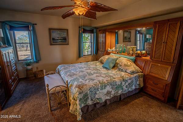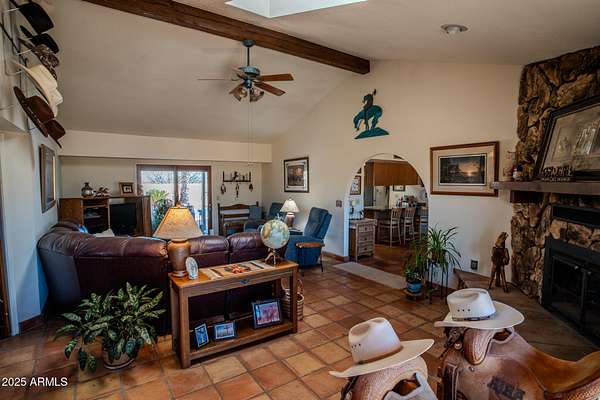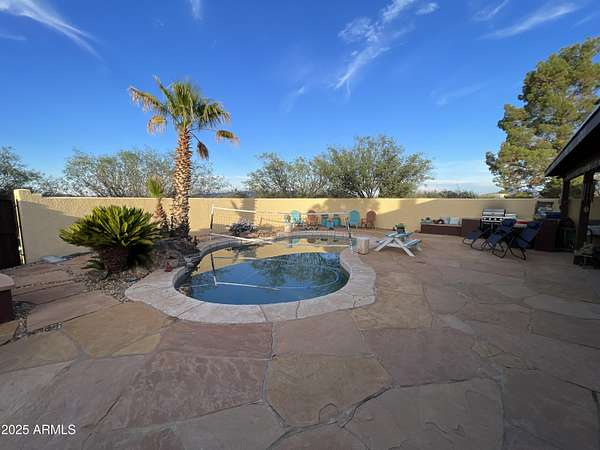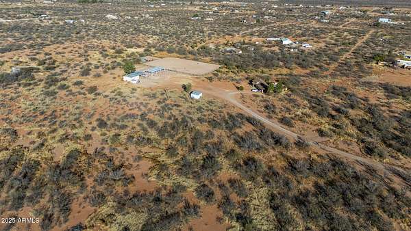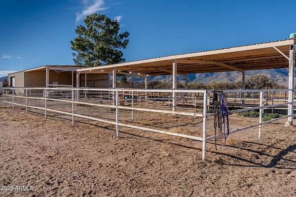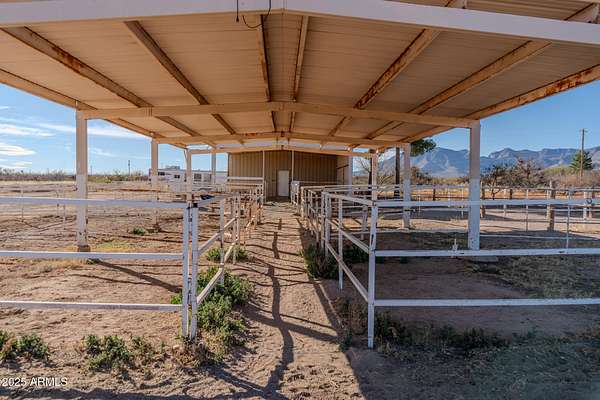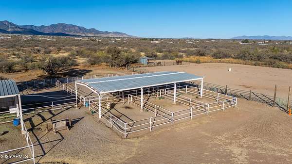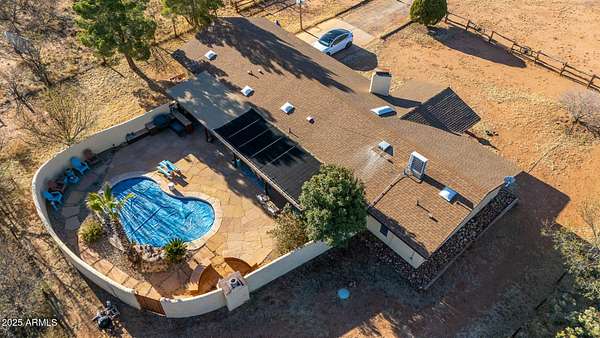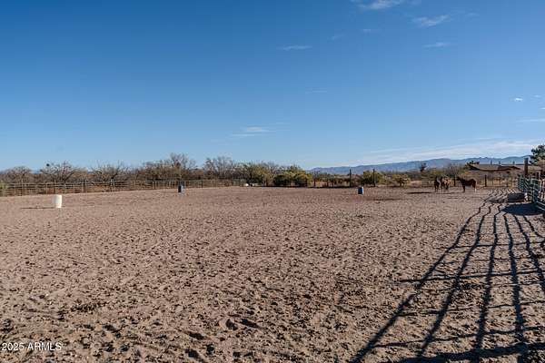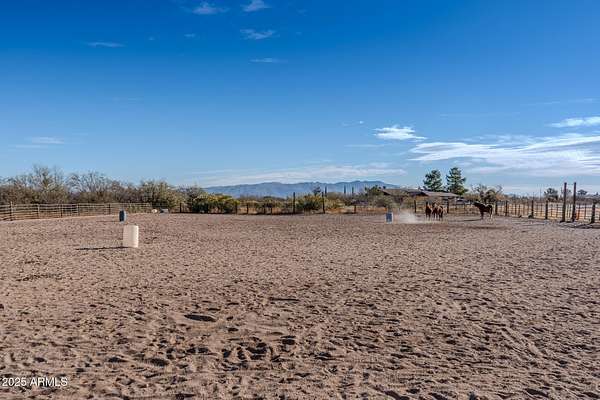 Horses Welcome! This 17-acre property includes a 3-bedroom western styled ranch home with brand new roof and gorgeous back yard with solar heated in-ground pebble tec pool complete with waterfall feature, and outdoor fireplace with bench seating, barn with 9 horse stalls, riding arena with additional turn out, separately fenced pasture, private well with manual hand pump, two bay lean-to structure, and the list goes on! You'll love the mountain views with breath taking Arizona sunrises and sunsets. This listing is for both parcels 104-82-026B (4 acres) and 104-82-026K (13.34 acres). You won't find one like it.