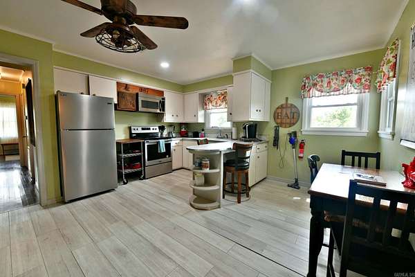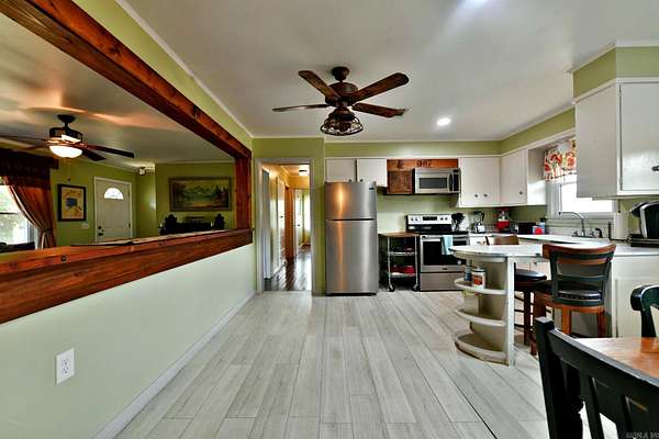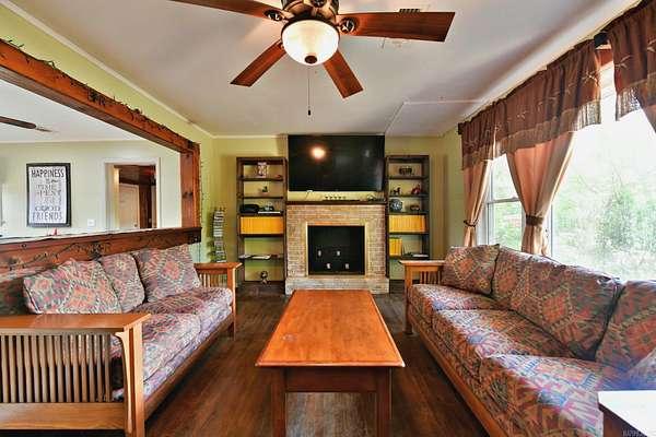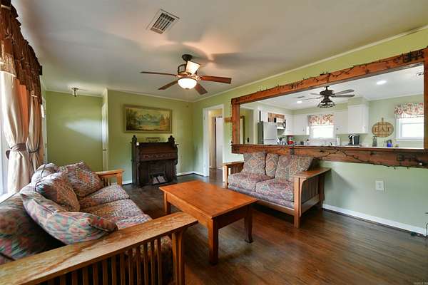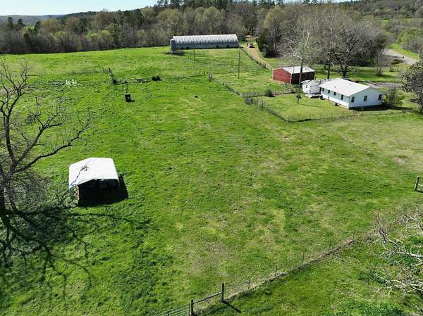Discover the charm of country living with this adorable, remodeled older home on 35.43 beautiful acres near Waldron, Arkansas! This spotless 2-bedroom, 1-bath home boasts real wood floors in most rooms, and thoughtful updates that preserve its character while adding modern comfort. A seasonal creek winds through the property, adding to its serene appeal. Perfect for a hobby farm or small livestock, the land features a 30x30 detached garage/shop and a massive 45x100 Quonset barn ideal for hay, equipment, or storage. Enjoy easy access with highway frontage and endless outdoor opportunities nearby, including the Ouachita National Forest. Whether you're looking for a peaceful homestead, a weekend retreat, or a place to live the simple country life, this property is cute as a bug and ready for you to call home! Well on property. Fireplace in living room is non functional. Capped and possibly filled in, decorative only. Head gate and sqeeze shoot do not convey.