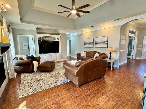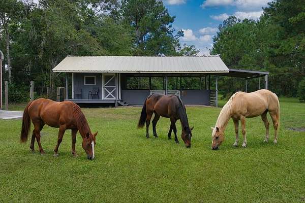 This well-maintained 4 bedroom, 3 bath home offers space, privacy, and functionality on nearly 6 acres in the highly desirable Hahira area. Designed for comfortable everyday living and easy entertaining, the home features engineered hardwood flooring throughout the main living areas and primary suite, combining durability with a timeless look. The living room is warm and inviting, centered around a wood-burning fireplace, while the kitchen offers granite countertops, generous prep space, and an easy flow into both the breakfast area and formal dining room, providing flexibility for casual meals or larger gatherings. The primary suite includes a jetted tub, tiled walk-in shower, and dual vanities. Three additional bedrooms and two full baths (one en-suite) offer plenty of space for family, guests, or home office needs. A new roof adds peace of mind and enhances the home's move-in readiness. Outdoors, the property truly shines. A covered back porch overlooks the expansive grounds, complete with a stocked pond and small dock, creating a peaceful setting for relaxing or enjoying the outdoors. For those with animals or hobbies, the barn is already configured with horse stalls, and a large powered metal building provides excellent space for a workshop, storage, or equipment. Both structures are on a separate power meter. Additional features include a metal roof carport and a 220-amp RV hookup with its own septic connection, making it easy to host guests or accommodate RV storage on-site. With its combination of usable acreage, thoughtful improvements, and versatile outbuildings, this property offers a rare opportunity to enjoy country living with modern convenience in one of the area's most sought-after locations.