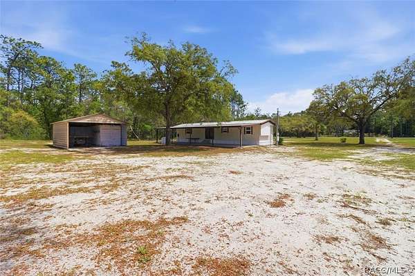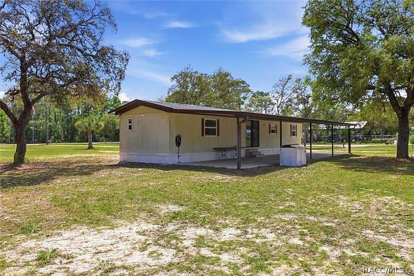 Enjoy the freedom of country living with no HOA fees and no deed restrictions in this 2-bedroom, 2-bath manufactured home set on a generous 2.41-acre parcel in peaceful Homosassa, Florida. Offering 784 square feet of comfortable living space, this property is ideal as a seasonal retreat or a full-time residence surrounded by nature. The expansive acreage provides ample room for all your recreational vehicles, equipment, and beloved animals-even horses! With existing carports and a storage container already in place, the property is well-suited for a variety of lifestyle needs. The home features a private well, septic system, and it sits outside of a flood zone for added peace of mind. For those who dream of self-sufficiency, the land offers abundant space to create your own garden, plant fruit trees, or establish raised beds for homegrown produce. There's even room to design the outdoor oasis you've always wanted-whether that means adding a sparkling pool, expanding outdoor living areas, or building additional structures (check county guidelines). This property blends the tranquility of rural living with convenient access to everyday essentials. Nearby shops, medical facilities, waterfront restaurants, and schools make daily life effortless. Citrus County is celebrated for its natural beauty, wildlife, and endless outdoor recreation, including boating, fishing, scalloping, kayaking, snorkeling, cycling, camping, and the unforgettable experience of swimming with manatees. Located just three miles from Homosassa Springs State Wildlife Park and ten miles from historic downtown Crystal River, Hunter Springs, and Kings Bay Park, you'll have easy access to swimming, snorkeling, sunbathing, and kayaking adventures. Opportunities like this don't come often. Call today!