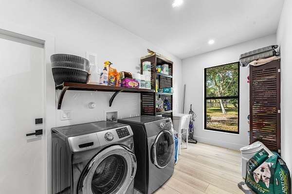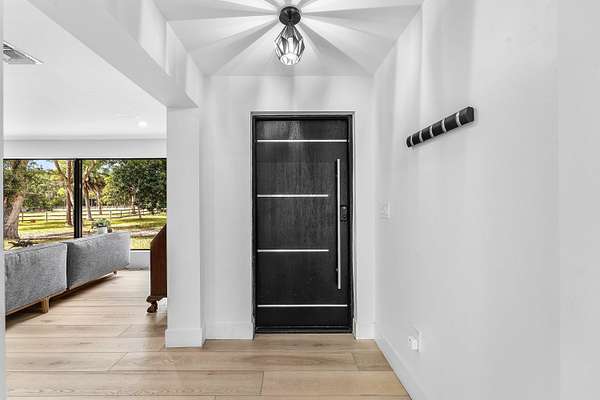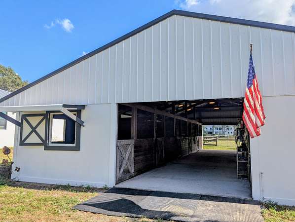 New Modern Home Rebuilt in 2023 sits on 5.21 fenced acres offering a fantastic blend of Designer Styling & Comfortable Country Living!! Perfect for anyone looking for space & privacy with many options for personalizing your ''Slice of Heaven''! Features ALL NEW panoramic Impact Windows & Doors, Whole House Back-Up Generator w/ 500 gal propane tank, & 220V RV power. You'll find spa-inspired bathrooms, a stylish modern kitchen, a built-in sound system, metal roofs w/ full insulation (both in home & barn), plus a new Septic system & drain field too! The 7-stall barn offers excellent ventilation, in & out paddocks plus 4 huge paddocks (or riding ring) as well! A scenic stocked pond (can use for irrigation use) offers a perfect setting to enjoy scenic sunsets, fishing or even a fire pit