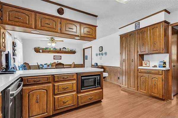 What a great country atmosphere! Beautiful trees, lots of room to roam, children and furry pets don't have to worry about traffic from Dickson Road. Back in the trees where house, barn, cellar and other older buildings are located. Can you say water?? This property has a wonderful well, SOWC (rural water) plus a pond and a dry weather creek! Great waterfowl opportunity. Owner is retiring, in ill health, and won't be moving outside equipment or inside belongings until SOLD. There is also a storage shed, large shop and other older out-buildings. Farm animals are welcome! Come out and find the perfect place to raise children, pets and maybe grow a garden. Dickson School is 2 miles to the north. If you like to hunt and fish, you are surrounded by 3 lakes. Lake Murray, Lake Texhoma and Lake of the Arbuckles.
