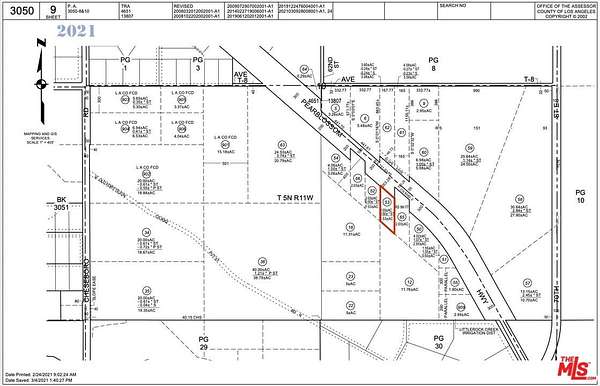 Est $363/moAPN 3050-009-053. Lot Size Appx 66,854 sf, zoned LCA21. Great opportunity to build on a flat lot, over 1.5 acres, that fronts Pearblossom Hwy in the heart of Palmdale! Flat lot with desert & mountain views. Zoned heavy agricultural. No reports or survey. Buyer to verify all information and rely on their own investigations. Drive by and MAKE OFFER.
