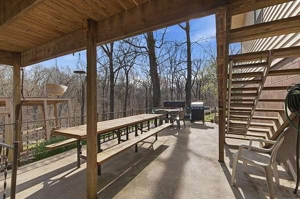 This charming one-owner home sits on a quiet dead-end street just minutes from town, with mature trees and peaceful woods as your backdrop. It features two primary suites-one upstairs and one down-plus two additional bedrooms and two full bathrooms upstairs, along with a cozy TV room and dining area. The lower level offers two more bedrooms, a full bath, a game room with a wood-burning fireplace, and a utility room with extra storage that could double as a kitchenette. Outside, enjoy a built-in picnic table, grills, and access to a cellar room for storing canned goods. A home warranty covers all appliances and the HVAC system. Raised garden beds, a two-car garage with storage, and the perfect blend of convenience and tranquility complete the package.