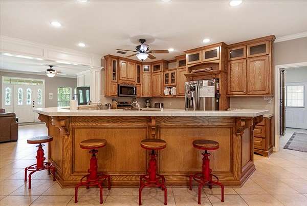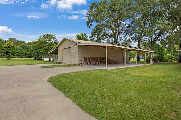 If you've been dreaming of space, privacy, and the kind of peace only East Texas can offer, this property delivers. Set on 27 beautiful acres just minutes from Gilmer and Pittsburg, this 4-bedroom, 3-bath home welcomes you with a tree-lined driveway, open views, and the quiet of nature, complete with a creek and abundant wildlife. Inside, the layout is both functional and inviting. The open-concept main living area is ideal for everyday living and gathering, while the split floor plan offers privacy for the primary suite. Upstairs, a large bonus room with its own full bath adds incredible flexibility, perfect for a guest suite, game room, home office, or second living space. A full-length sunroom stretches across the back of the home, creating a peaceful place to enjoy the land year-round, and the wrap-around porch is made for morning coffee, evening sunsets, and slow East Texas days. Outside, the property truly shines with a detached garage, a large workshop with additional rooms, and plenty of space for equipment, hobbies, animals, or weekend projects. Thoughtful upgrades include paid-off solar panels at closing and a whole-house Generac generator, offering energy savings, reliability, and peace of mind. Homes with this much land, versatility, and efficiency are rare. Come experience the space, freedom, and lifestyle waiting for you!