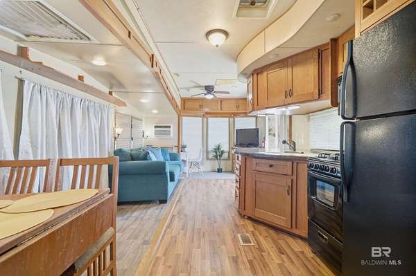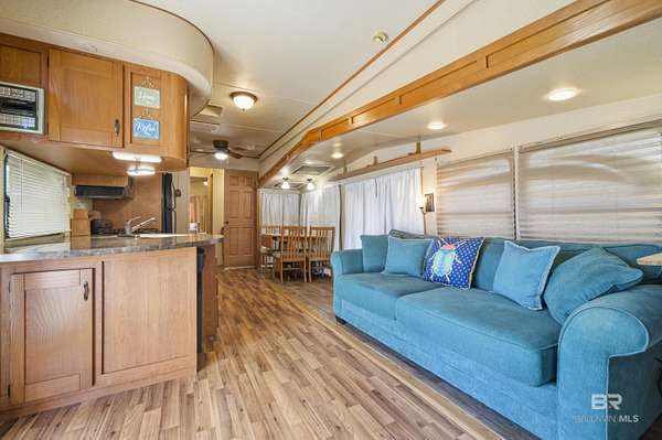 Located in the desirable Spanish Cove community right on the Alabama/Florida state line, this property offers a prime location just minutes from downtown Pensacola, Perdido Key beaches, 2 miles from the Lillian public boat launch, and short drive to Gulf Shores/Orange Beach. Featuring a 2010 Salem 1BR/1BA park model that is permanently placed, properly tied down, and connected to city water, sewer, and power at no additional value. It has never been moved since being on the lot. There is also the option to remove the park model and build a brand-new residence or new mobile home making this an excellent opportunity for future development or customization. The property also features a fenced yard, a shed with power, and a covered side porch perfect for relaxing or grilling. Inside, the home comes furnished and offers a bright, open layout with plenty of windows for natural light. The kitchen includes ample cabinet space, room for a dining table for four, and a cozy electric fireplace in the living area. Additional features include a gas stove, dishwasher, garbage disposal, washer/dryer hookup, and a stereo system with indoor speakers and brand-new outdoor speakers. Spanish Cove is a golf-cart-friendly community offering 24-hour security, a pool (covered and heated in winter), a private beach area, and a 500-foot fishing pier on Perdido Bay. Amenities also include two clubhouses, playgrounds, tennis courts, shuffleboard, basketball courts, a fitness room, and laundry facilities. Low POA dues include trash pickup. The Activities Committee hosts regular events such as water aerobics, book club, games, live music, group trips to Biloxi casinos, plus so much more! Conveniently located near beaches, boating, and shopping, this property offers flexibility, lifestyle, and location all in one. Buyer to verify all information during due diligence.