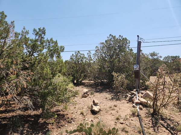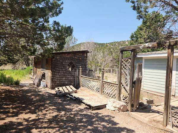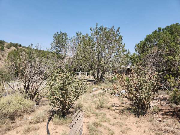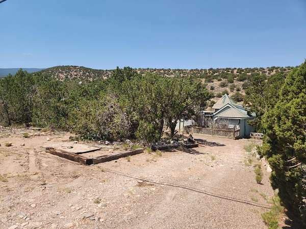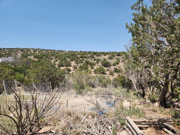 ACRE LOT WITH WATER! - NO COVENANTS - $75,000. Being sold just as land, the property has an 800 sq ft old house on it that is in very rough shape. The land is gently sloping, nestled in a valley just past the Village of Placitas, near National Forest. Peaceful views; the land has more (& taller) trees than most lots in Placitas. Secluded property with shared well, electric, phone & internet already there. Camino Del Oso is a county maintained road. No covenants, no HOA & very minimal zoning, so you can build just about any size or style home you like! Horses, chickens, goats & other animals are allowed! The land has numerous garden & flowerbed areas. The house has no septic system, & the structure may just need to be torn down. Just 3/4 mile from Highway 165. This is a cash sale only.