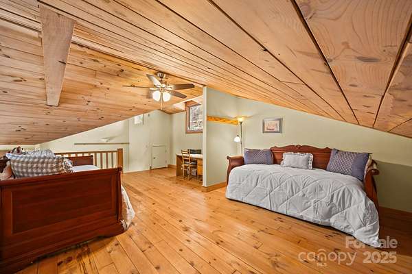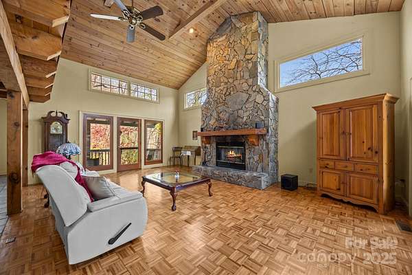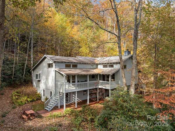 IMPRESSIVE Private Mountain Sanctuary nestled in 700 acres of preserved native beauty! 3 BR and loft,3 BTH MAGNIFICENT home w/ cathedral ceilings accented w/ warm hardwood & rustic beams! Marvelous gourmet kitchen has custom shelving & cabinets, gas stove & tons of storage! Massive wood burning ROCK FIREPLACE! Lovely winter views of Flat Top mountain and surrounded by lush flora! This thoughtful OPEN floor plan is perfect for family gatherings & entertaining! Enjoy your morning coffee on one of the various covered porches while you listen to the birds sing and watch the deer & squirrels! Pick which floor you would like your primary suite to be on.. All the large bedrooms are ensuite! Plenty of room for hobbies or crafts whatever your heart desires can be achieved in this spacious home! SKYRUNNER FIBER OPTIC internet! GENERAC propane generator! Double car garage! This SOLID home was built to enjoy all our gorgeous MOUNTAINS have to offer! You will not find a more CONVENIENT LOCATION!
