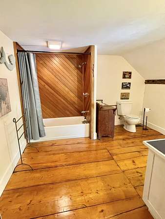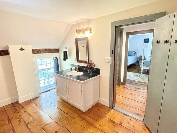 New Price Improvement!!! Welcome to the original Cooper family homestead, a timeless treasure nestled on the highly sought-after Cooper Hill Road. This beautifully preserved antique home seamlessly blends historic character with thoughtful modern updates. A newly added composite deck with sleek cable railing is the perfect place to take in the stunning, long-range mountain views stretching over 100 miles toward NH's Mt. Monadnock. Step inside to find wide plank wood floors, high ceilings, and an abundance of natural light. A cozy wood-burning fireplace anchors the inviting living space, while the spacious kitchen, dining room, and den provide room for everyone to gather. Upstairs, the generous primary suite offers a peaceful retreat, complemented by two additional bedrooms with closets and spacious bathrooms. A second-floor washer and dryer add convenience, and recent attic enhancements improve energy efficiency while offering a versatile bonus area. The backyard invites relaxation with mature trees, blueberry bushes, lush gardens, and two sheds for outdoor activities and storage. Additional features include a whole-house generator for year-round peace of mind. Ideally located just 10 minutes from Mount Snow and Haystack for skiing and snowboarding, close to hiking trails, lakes, and the charming villages of Dover and Wilmington, this home offers the perfect balance of retreat and recreation. Slow down, step back in time, and rediscover what matters most.