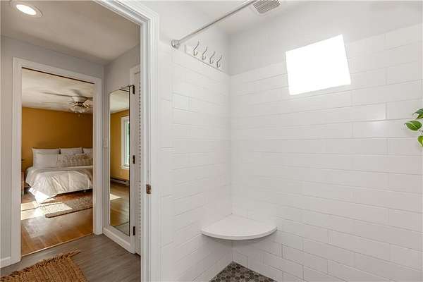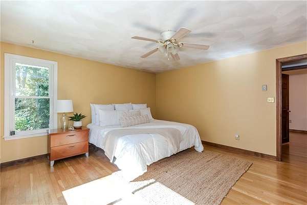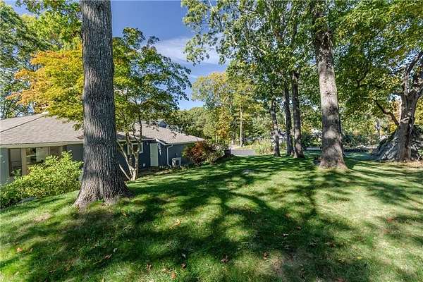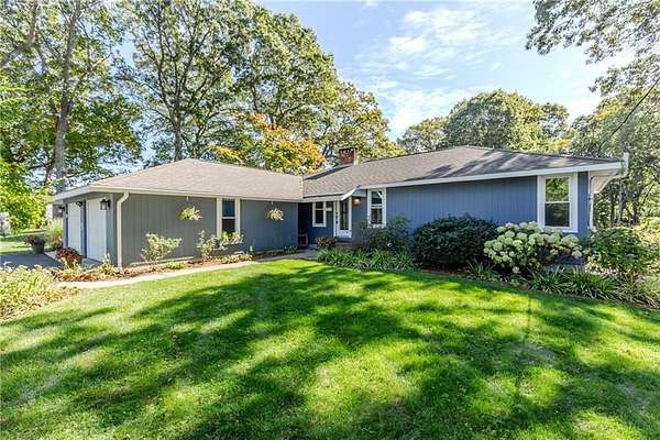 Presenting an executive-style ranch set on a rare 2-acre lot in Duck Cove, a sought-after waterfront enclave in North Kingstown. With beach rights to Lone Tree Point and skiff storage on the beach, the setting is private and coastal. BONUS > Home includes architectural plans for subdividing property into one or two additional lots, perk test done on Lot One, see attached design. < Pull into the attached two-car garage with direct entry into the house and step into an open and airy one-level floorplan enhanced by vaulted ceilings, skylights and hardwoods throughout. The new kitchen features an oversized island, granite counters, and updated cabinetry, and the primary bedroom suite features a newly renovated bath. A full walkout lower level with in-law potential adds flexibility, whether for extended living, a home office, or a recreation room. A deck spans the length of the home and overlooks the mature, landscaped grounds that add privacy and curb appeal. Additional highlights include mini-split A/C, a tennis court ready to be revived, and close proximity to both Providence and Newport (less than 30 minutes). A property of this size, setting, and coastal access is a rare find and an opportunity to build a family compound or subdivide the land. The choice is yours!