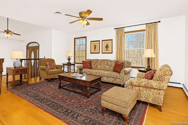 Enjoy distant panoramic mountain and treetop views from this welcoming 4 bedroom, 2.5 bath Colonial home, perfectly situated on a serene, gently elevated 1.78 acre PRIVATE lot in the desirable CHERRY HILL ACRES subdivision. The main floor offers a spacious living room, a formal dining room, and a well-sized eat-in kitchen featuring maple cabinetry, stainless steel appliances, and access to the partially covered deck and swimming pool. Step down three steps from the kitchen to the open, expansive sunken family room which, exudes warmth and is anchored by a massive brick wood burning fireplace. Upstairs, retreat to the grand primary suite, which includes a large walk-in closet and a private en-suite bath with a shower. Three additional well-proportioned bedrooms and a renovated, elegant hall bathroom provide ample space and comfort. Entertain effortlessly, whether by the in-ground pool in your private backyard oasis or throughout the home's inviting interior spaces. Offered for the first time, this meticulously cared-for home features numerous upgrades completed in recent years, including a central air system, boiler, updated siding and windows, and beautifully refinished hardwood floors. The Metro-North Croton Falls station is only 7 minutes away for an easy commute, and it's a 1 hour drive to New York City. Located in the Mahopac School District-known for its academic achievements and strong arts and STEM programs-and close to Putnam Hospital, shopping, excellent local dining, multiple parks with scenic hiking trails, golf courses, tennis and pickleball courts, the bike path, and the Croton Falls Reservoir, this home offers both tranquility and accessibility in a highly sought-after location.