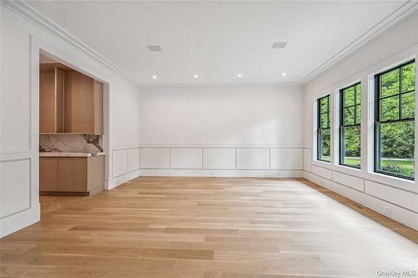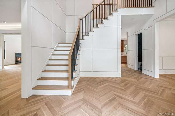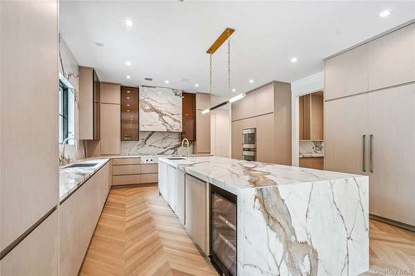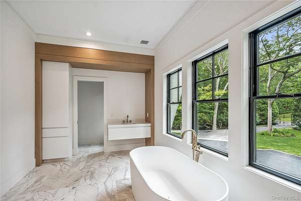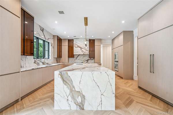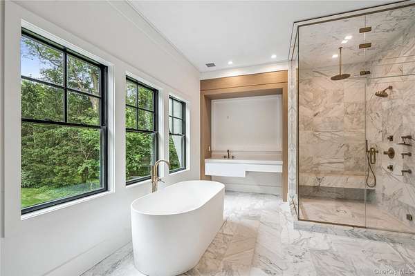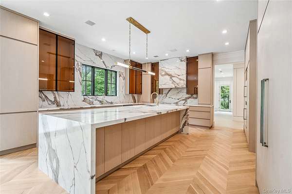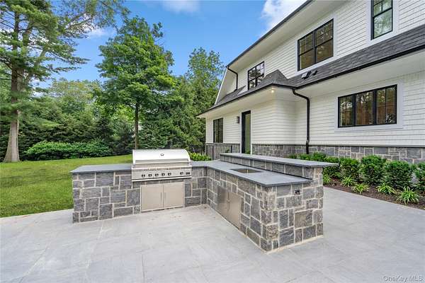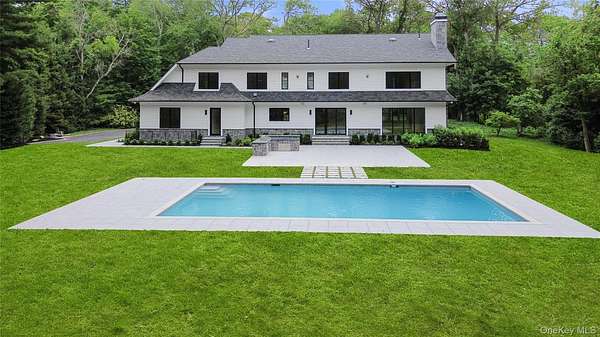 Brookville New Construction | 63 Fruitledge Road offers an unparalleled lifestyle of luxury on Long Island's Gold Coast. This newly completed home features a sleek, modern colonial exterior, with countless, black-encased windows allowing natural light to flood the entire interior. Upon entering, the soaring foyer welcomes you with open space and two convenient coat closets and beautiful powder room with pristine marble details. The formal living room features a custom wet bar with wine fridge, ideal for entertaining year-round. An impressive, open-concept den is lined with a wall of floor-to-ceiling windows providing a view of the expansive backyard, with a marble-encased fireplace to bring a cozy feeling on colder days. An impeccably-designed, fully custom kitchen serves as the heart of the home, centered around the large, waterfall island, with custom cabinetry and paneled appliances - including two Gaggenau wall ovens, two Bosch dishwashers, and SUBZERO refrigerator and freezer. Off the kitchen is an open butler's pantry that leads to a formal dining room. Tucked behind the kitchen and dining area is an open mudroom space with full bathroom, catering to not only the back patio, but the 3-car garage and side entrance as well. Additionally, this service area offers a first floor bedroom, large pantry, and back staircase leading both upstairs, and to the expansive basement - also featuring an entrance off the side courtyard. Upstairs, the oversized primary suite is hidden behind double doors that open to high ceilings, and picture windows with views of the beautiful backyard. Two walk-in closets with built-ins offer plenty of organization options, while the en-suite full bathroom includes soaking tub, separate vanities, makeup vanity, wash room and full steam shower. The additional four bedrooms all feature their own en-suite full bathroom and walk-in closet. A large laundry room sits at the end of the hall, with ease of access to back staircase and linen closet. Outside, a breathtaking Gunite 40' x 20' saltwater & heated pool takes center stage, with pavers leading from the outdoor kitchen and patio. The impeccable combination of craftsmanship and design come together at 63 Fruitledge Road - a modern take on the timeless Brookville lifestyle.