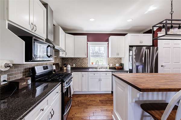 Peaceful and inviting ranch set on 3 acres, now featuring a brand-new pool. Built in 2013, this home offers the space and comfort you've been looking for. The generous lot provides privacy from neighbors and sits on a low-traffic road, with plenty of room to add a larger barn, workshop, or additional storage. Low-maintenance composite decking surrounds the home for easy outdoor living. Inside, you'll find an open-concept kitchen, dining, and living area-perfect for gathering and entertaining. The large island creates a natural centerpiece for hosting, and all stainless steel appliances are included. The primary suite is thoughtfully positioned on the opposite side of the home from the other bedrooms, offering added privacy. It features a spacious bedroom, an en-suite bath with a tiled shower, and a walk-in closet. The two additional bedrooms are both generously sized with tons of natural light and share a full bathroom with a tub. Downstairs, the partially finished basement provides flexible space, currently set up as a playroom, additional living area, and gym, along with ample storage and shelving in the back. Delayed negations April 22nd @ 5PM.