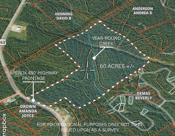 Est $1,234/moPrime Location with Mixed-Use Potential. This exceptional 60-acre property offers an investment opportunity with approximately 480 feet of highway frontage. Located just north of the bustling town of Hardy, the land is a unique blend of convenience and natural beauty, featuring mature trees and a year-round creek. The strategic location,and highway frontage combined with the property's natural attributes, makes it a rare and valuable find. Explore the possibilities this unique property offers by scheduling your private showing today!